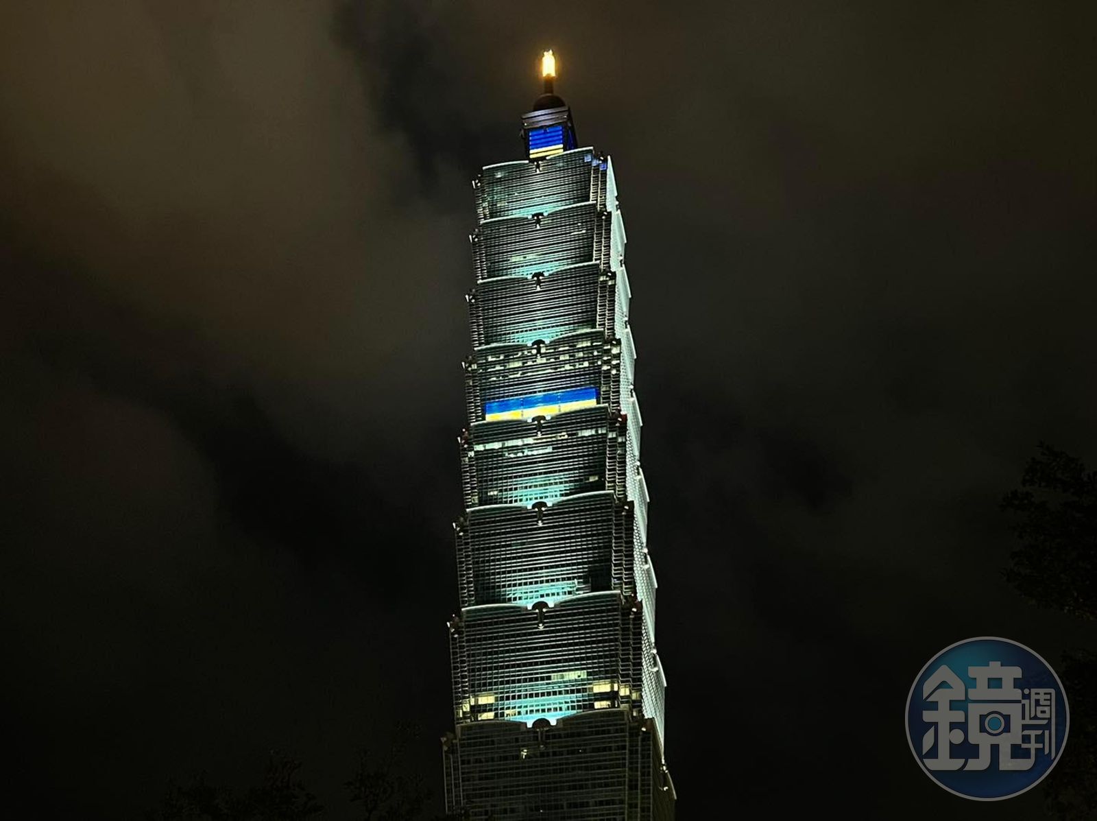 【烏克蘭成戰場】台北101「聲援烏克蘭」 點黃、藍燈光祈禱世界和平