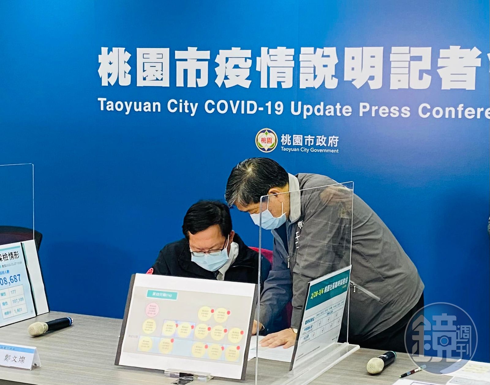 由於昨日新增之本土案例涉及幼兒園、國小及職場共分屬4個不同家庭,市府已迅速進行匡列採檢,鄭文燦今日上午召開桃園疫情記者會說明最新疫情狀況。鄭文燦表示,觀音米迪幼兒園26日採檢出1名幼童染疫,其父母也中鏢,因此對幼兒園進行全員採檢,共3個家庭、11人確診。