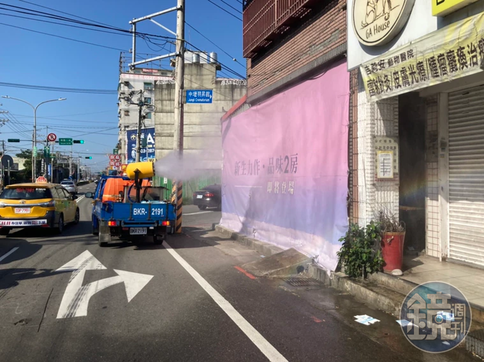 案20621確診後,桃園市府針對其職場附近進行消毒。(桃市府提供)發布時間:2022.03.01 10:49 臺北時間