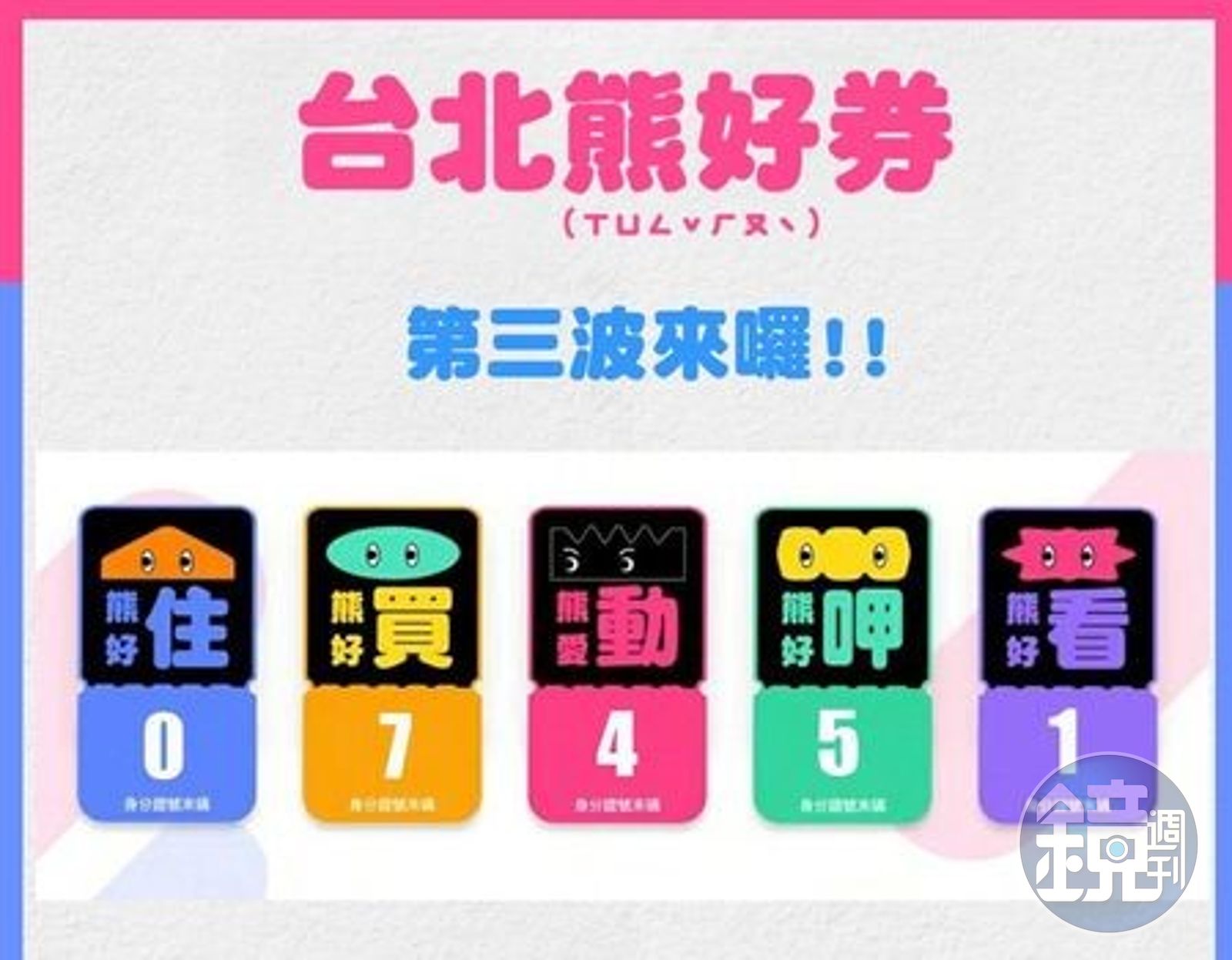 台北市去年底推出熊好券,北市府祕書長陳志銘今日指出,為感謝為並回饋前二波持「熊好券」振興台北經濟活動的民眾,第三波活動將不用登記,只要在前二波活動將「熊好券」全數使用完畢者,即自動取得參加第3波抽獎的資格,本次住宿、饗購、藝文、市集、運動等5種票券將會各抽出一個幸運號碼。