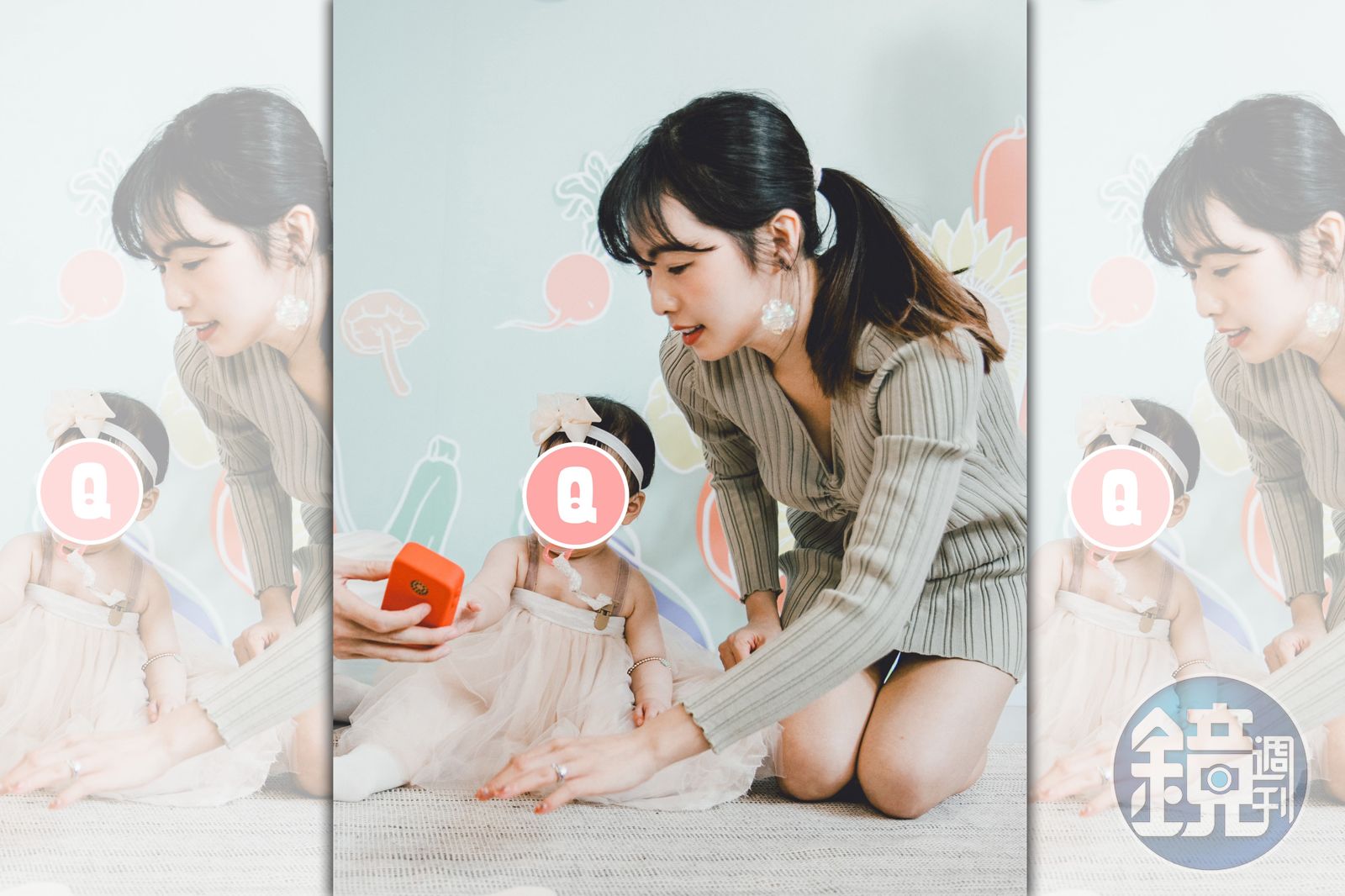 抓週習俗前,簡廷芮和老公賴先生邀請大家一起猜測小蘿蔔會拿到什麼職業,簡廷芮開玩笑表示,小蘿蔔可能只會抓現場男生,因為小蘿蔔從小就喜歡男生,給男生抱幾乎都不會哭,抓週儀式時,果然小蘿蔔一直看著旁邊的男生,遲遲進行不了抓週,簡廷芮請男性朋友坐在正前方,小蘿蔔願意才往前爬,讓簡廷芮和老公好氣又好笑。