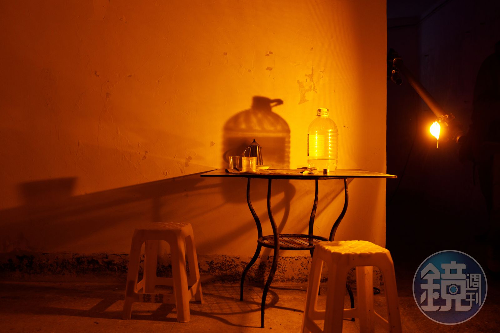另外,在南竿西北方的77據點,幽暗的坑道底下,有加拿大藝術家Liam Morgan(利安摩根)的作品《照理來說 應該可行》。藝術家以看似日常的桌椅,和利用人造光線、水源維持生命的植物,描述過去阿兵哥在地底下生存的樣態。同行友人雖年紀並不老,但他自稱「老兵」,感慨萬千的說:「看到這一幕我真的險些落淚,想起當年坑道裡的生活。」