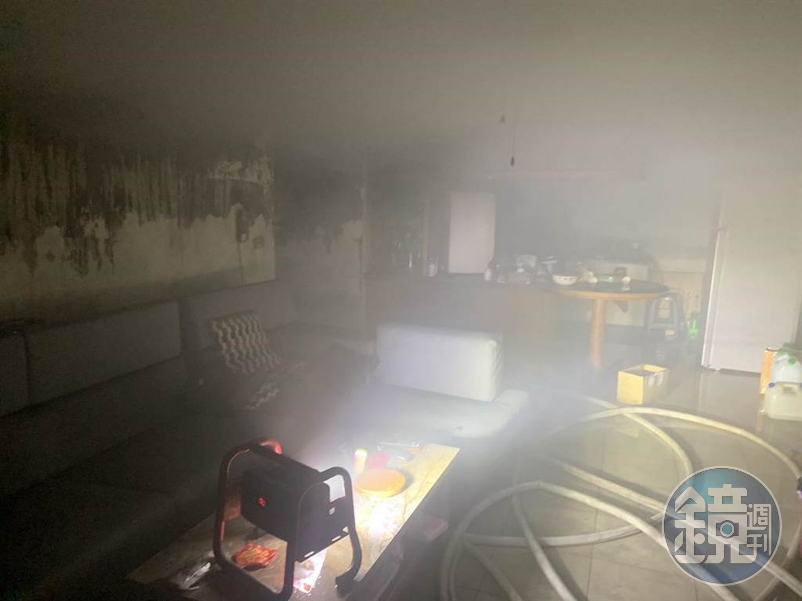 郭女住家客廳濃煙密布。(翻攝畫面)發布時間:2022.03.06 12:38 臺北時間