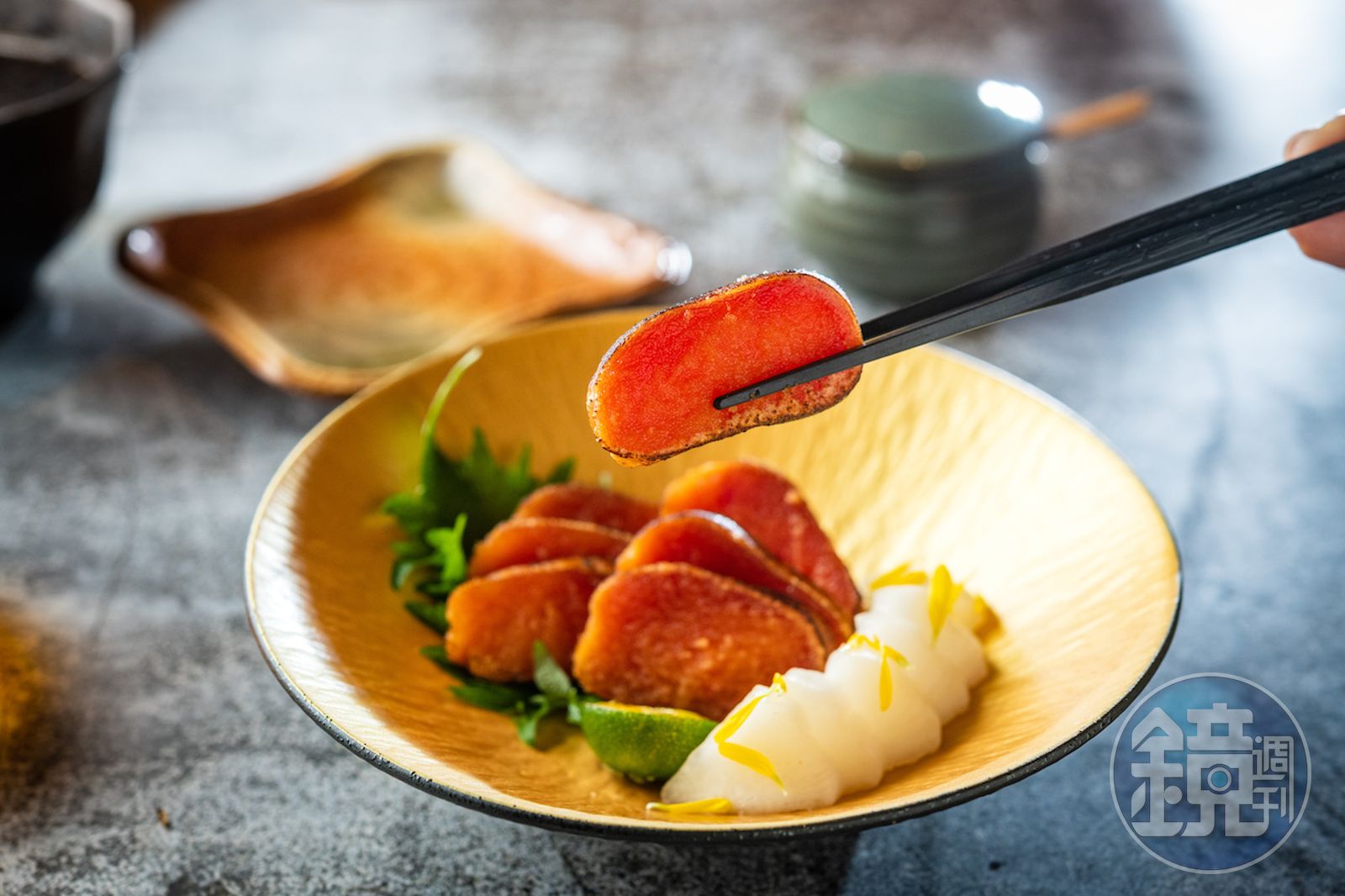 「烏魚卵一夜干」濕潤略黏、鮮鹹回甘。(250元/份)發布時間:2022.03.11 05:57 臺北時間