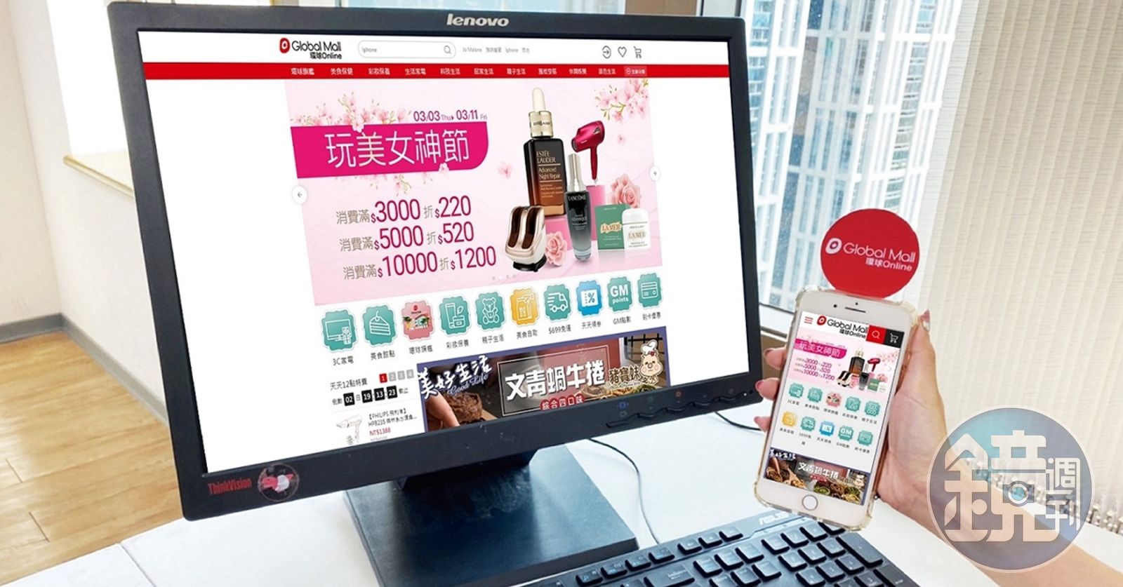 Global Mall環球Online「玩美女神節」即日起至3/11推出超值折價券,單筆滿3,000元折220元、最高滿10,000元折1,200元,現領現折;此外,還有多款美食、服飾配件、小家電及美食到店取,高達近20種滿額折價券讓消費者可以享超值購物;即日起至3/30使用Global Mall聯名卡消費單筆滿3,000元送環球Online限量100元折價券。