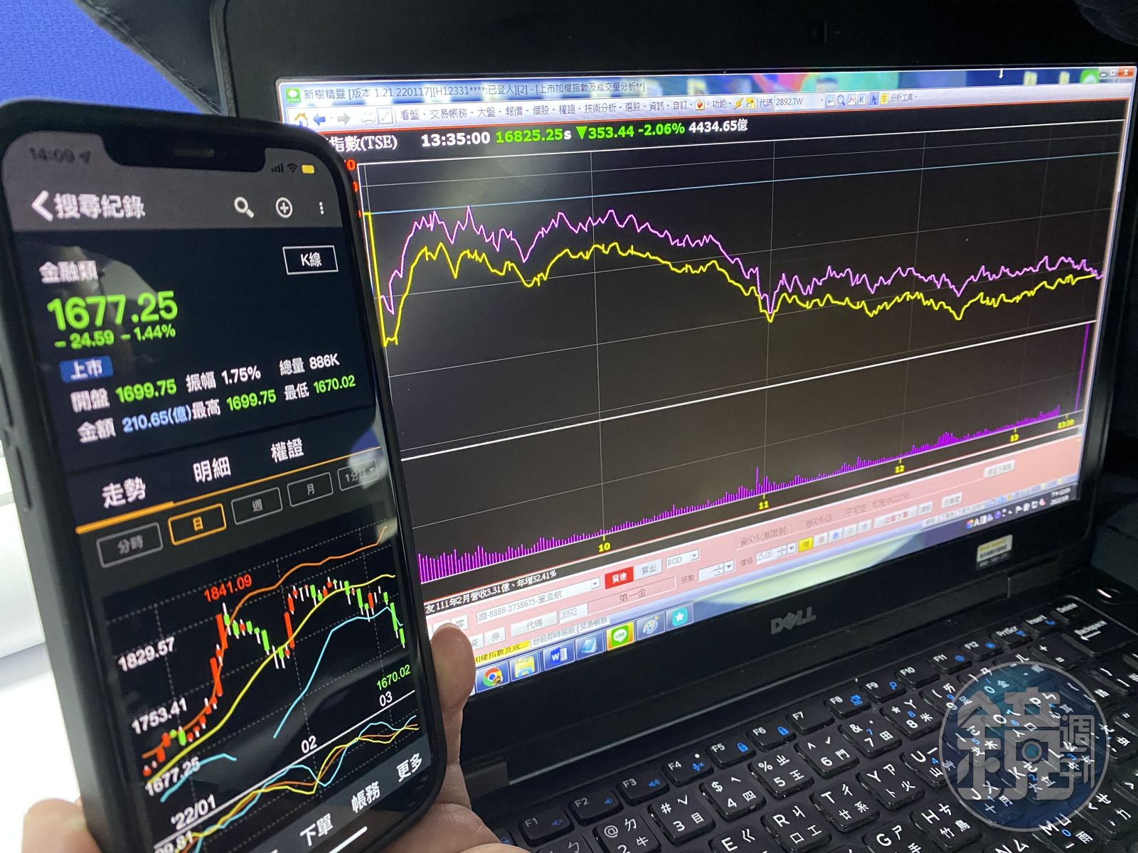 烏俄戰爭持續,台股壟罩賣壓,出現電金傳齊殺,除台積電跌幅2.26%,收563元外,聯電跌幅達3.68%、鴻海跌幅0.98%;金融股也全面下跌,包括台新金、中信金、永豐金、第一金、富邦金、國泰金,都有1.5%至3.8%不等的跌幅。