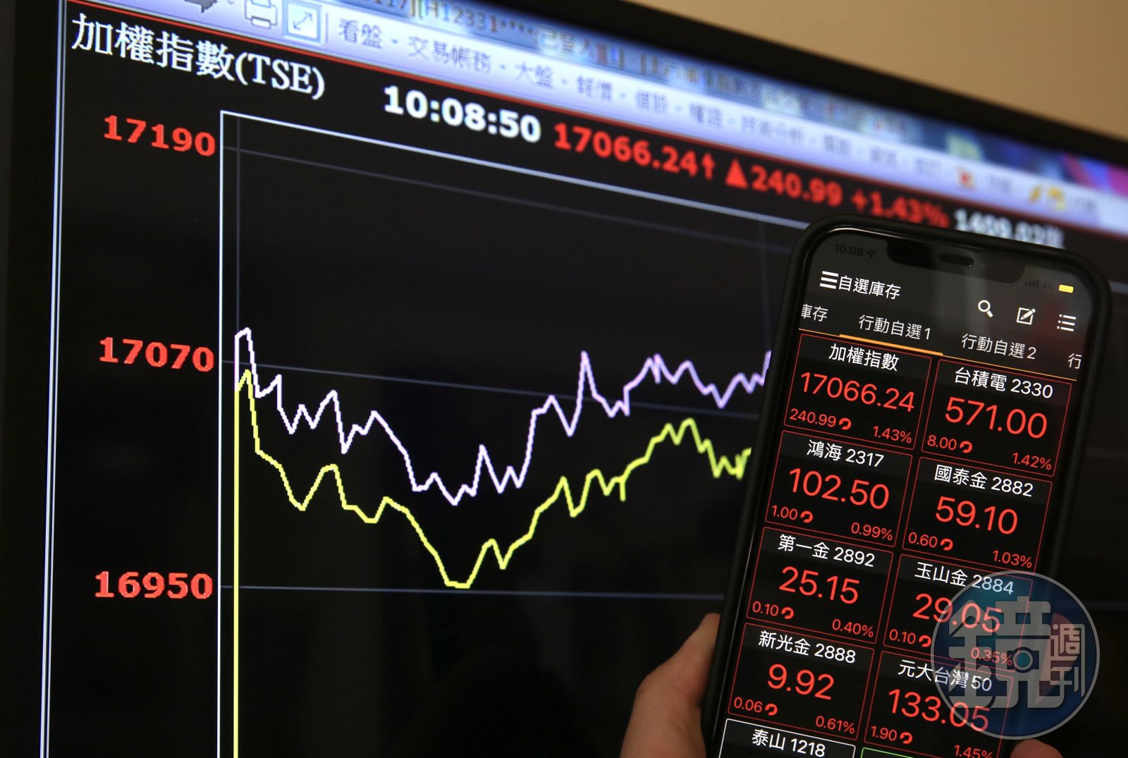 再以績優股護國神山台積電來看,游庭皓用南韓的三星與台灣的台積電比較,2006年以來兩者的股價漲幅,三星為593%,台積電的漲幅是三星將近1倍、達956%,可看出績優股長期看好,他認為近期的跌勢,並非來自於個股消息的風險,而是整體景氣下調造成股價下行。