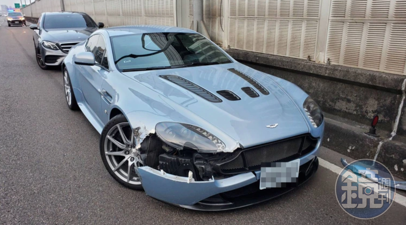 奧斯頓馬丁的車頭因擦撞毀損。(翻攝記者爆料網)發布時間:2022.03.09 11:01 臺北時間