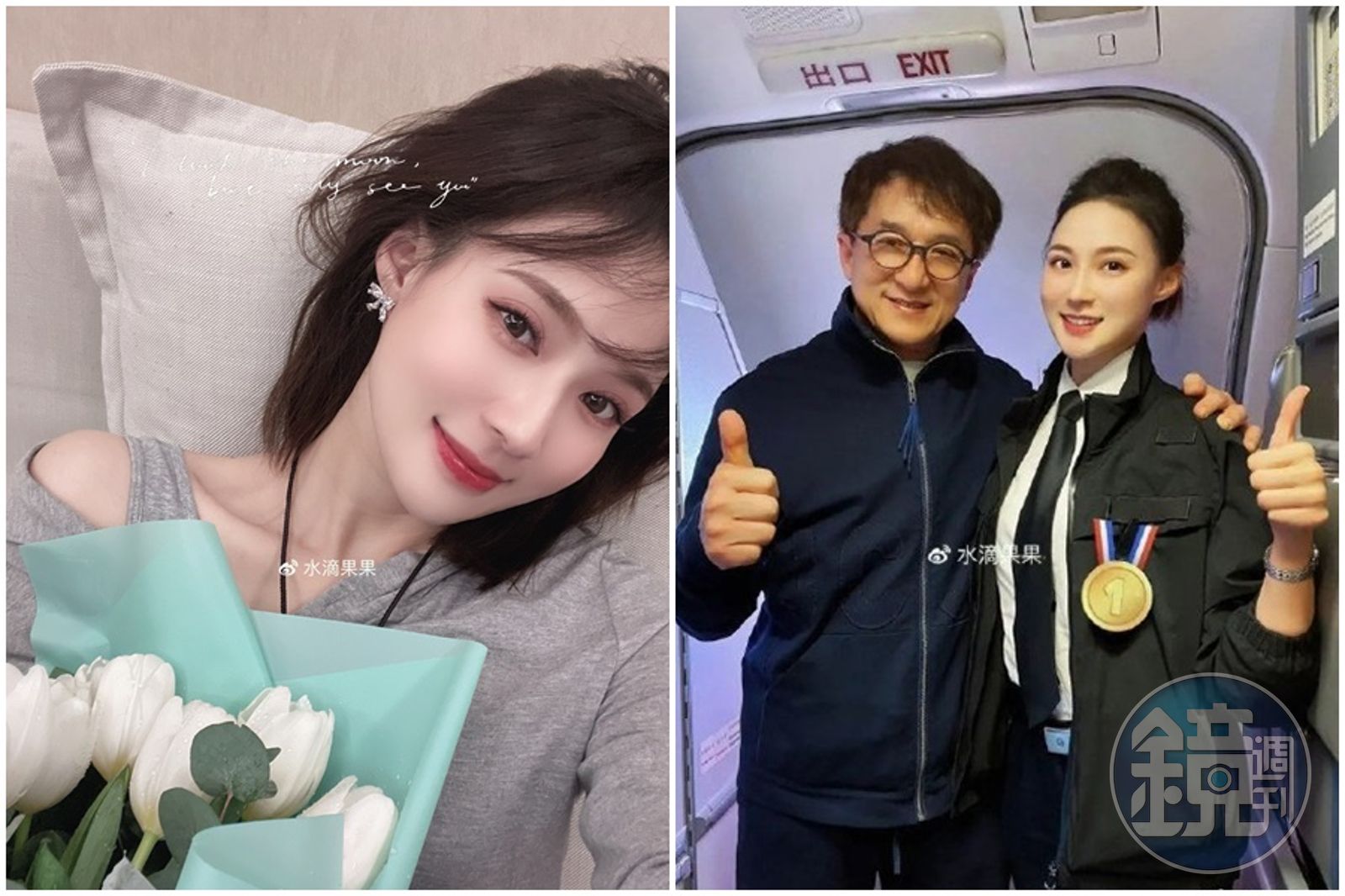 中國空姐「水果滴滴」日前在微博分享機上巧遇成龍的合照,只見豎起大拇指比讚,另一隻手搭在女方肩上開心合影,「水果滴滴」寫下「大哥也太nice了!不僅給照相,還要了我地址電話,說要給我們寄禮物,也太平易近人了吧。」不料一句話在中國社群引起議論。