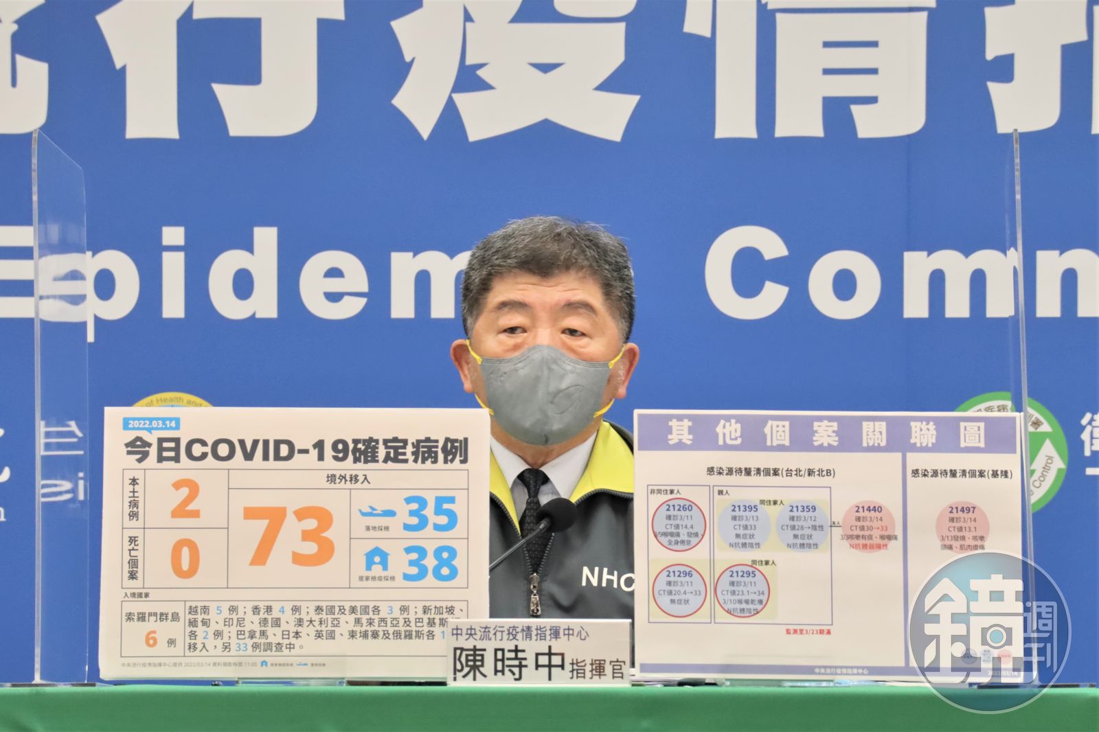 指揮中心指出,本土個案為1例男性、1例女性,年齡分別為30多歲及20多歲;陳時中說明,20多歲女性案21497為今日上午通報的案例,本身住在基隆、工作地點為台北,因有症狀前往醫院就醫並領藥,不過持續發燒,快篩陽性後檢驗確診、Ct值13.1。