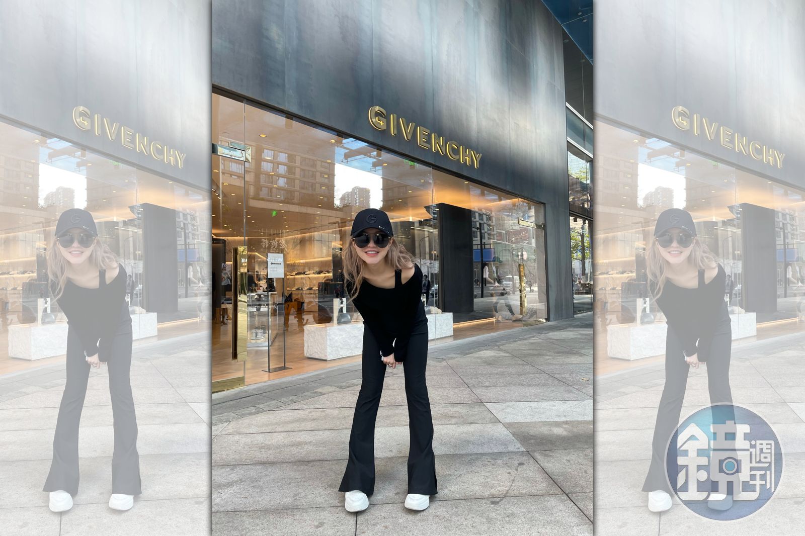 近日,周揚青在個人微博小號中更新近況,這幾天都在杭州,趁著天氣好,跟2個好友相約外出喝咖啡,只見她一身黑色勁裝,搭配同色系的鴨舌帽與超大墨鏡,站在精品店門口擺出俏皮的姿勢留下美照,發現路上有許多民眾都轉頭盯著她看,於是她忍不住詢問好友們。