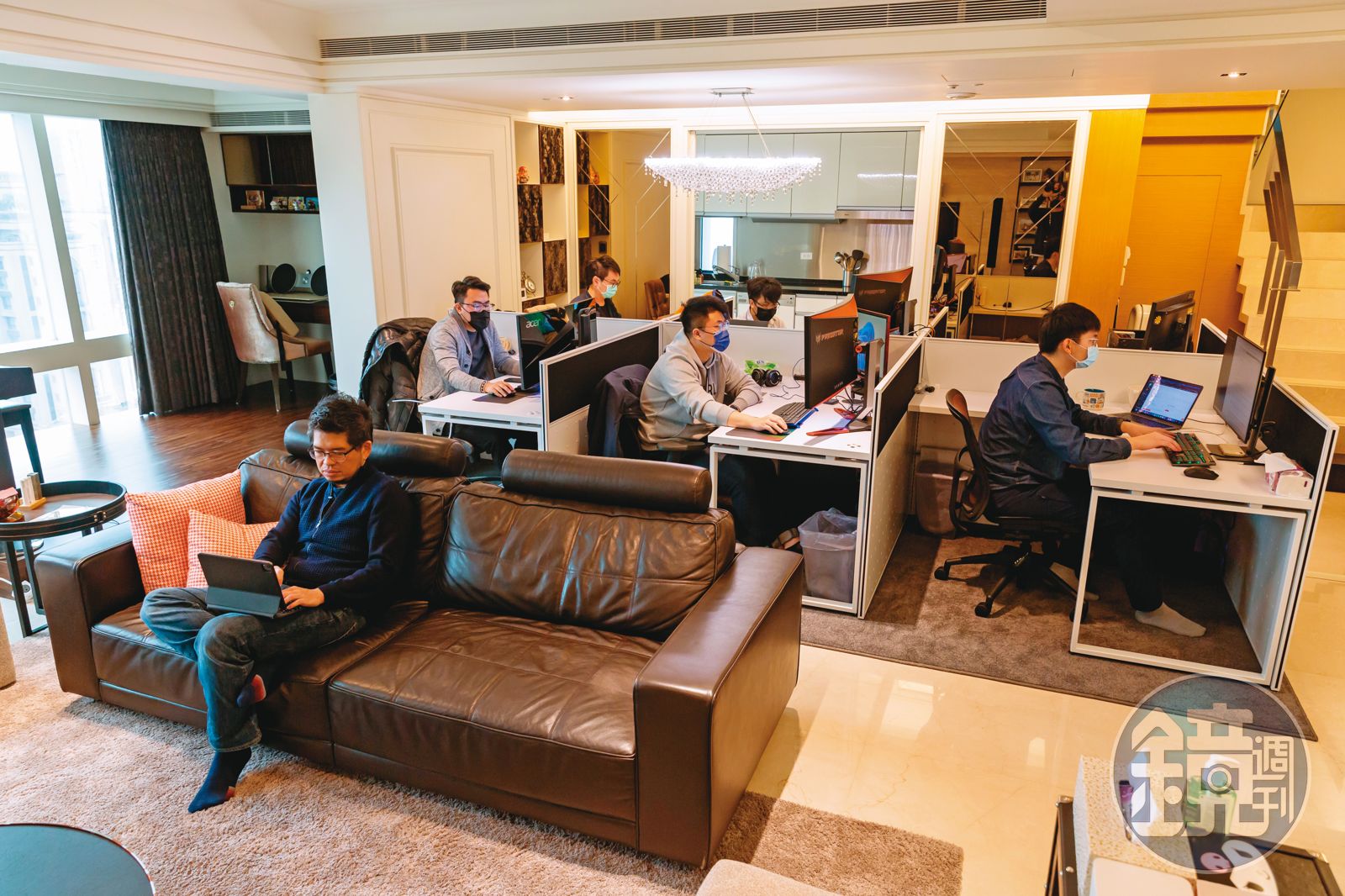 30坪空間,洋溢著濃濃的矽谷風,看不到個人辦公室,只有2排開放式辦公區。最醒目,莫過於玻璃帷幕設計的會議室,牆面寫滿密密麻麻文字,一見本刊來訪,馬上有員工上前整理牆面。原來陳士駿突發奇想時,會跑進會議室,與員工開會討論,記下重要事項。