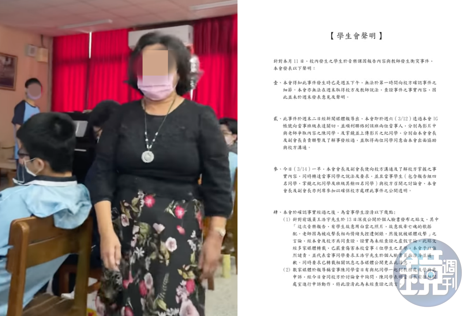 另一方面,台中一中學生會昨晚間也在臉書發出聲明,其中針對前議員王浩宇引用中一中學長稱「學弟使用白雲哏圖讓老師暴怒」之言論發文,要求其澄清並道歉。學生會指出,該不實指控「已嚴重傷害本校當事4位學生之名譽,本會予以強烈譴責」。