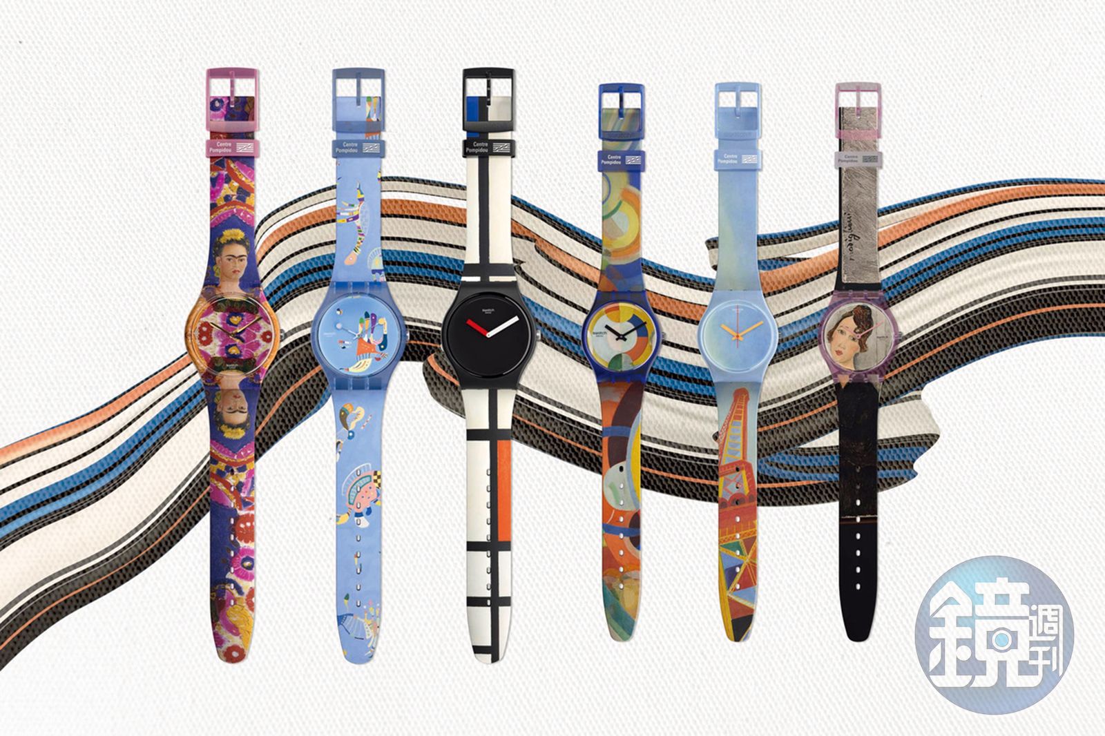 這次SWATCH攜手龐畢度藝術中心的Swatch X Centre Pompidou系列,精選Amedeo Modigliani(亞美迪歐·莫迪利亞尼)、Robert Delaunay(羅伯特·德勞內)、Frida Kahlo(芙烈達·卡蘿)、Vassily Kandinsky(瓦西里·康丁斯基)與Piet Mondrian(皮耶‧蒙德里安)五位大師的六幅經典作品,表現在34mm或41mm兩種不同尺寸的SWATCH上,忠實反映原畫的色彩與線條。除了各不相同的單獨畫作,這次SWATCH也提供特殊禮盒,除了能一次收集六款作品,禮盒包裝上也加入龐畢度藝術中心的外觀設計,對於藝術愛好者來說相當值得收藏。