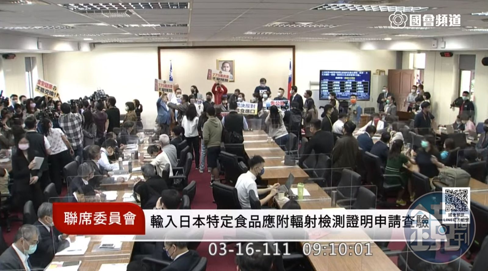 衛環、經濟、外交、財政、教育等委員會上午聯席審查福島5縣食品進口的行政命令,但在會議開始前就遭到國民黨團杯葛,要求先召開公聽會在審查,議事無法進行。