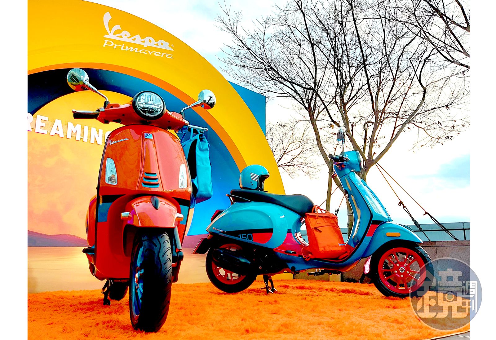 顛覆以往形象,將搶眼的雙主打車色「Orange Tramonto霓虹橘」及「Blue Audace孔雀藍」嶄新翻玩,迸出獨樹一格的大膽玩色組合,營造出不羈且俏皮的色彩氛圍,象徵著不受拘束的無窮想像力,鼓勵玩心未泯的騎士脫離日常紛擾,在由Vespa Primavera S.E.幻彩特仕版帶領的異想世界中,激發內在自由靈魂,追逐無盡的熱情。
