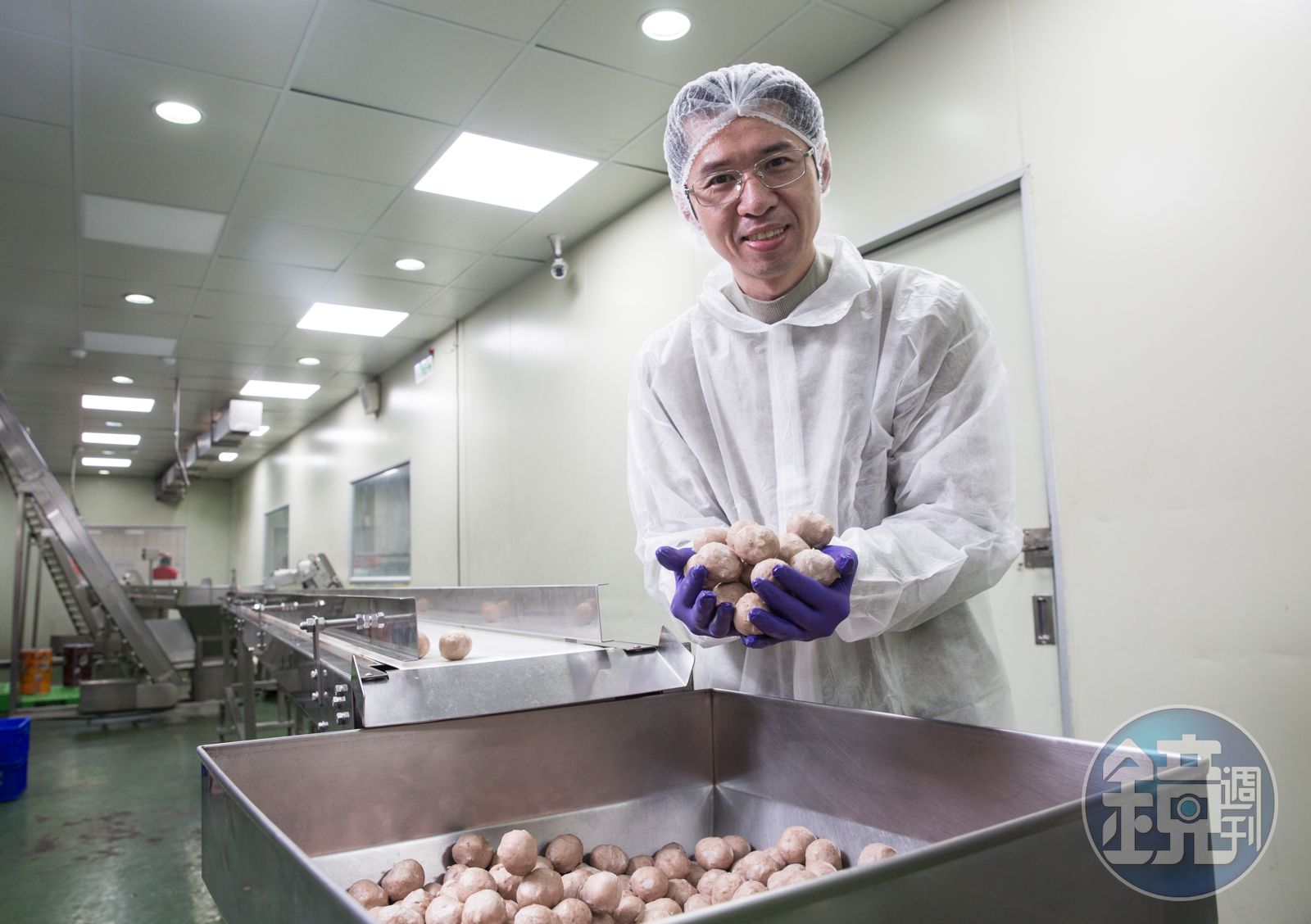 其實,他接班後整頓工廠面臨內外壓力,甚至面臨業界坐等海瑞倒閉、準備接收市場的壓力。他將廠房砍掉重練,建立全自動化產線,且為了避免碎骨不小心摻入,出貨前還用X光機幫摃丸體檢。