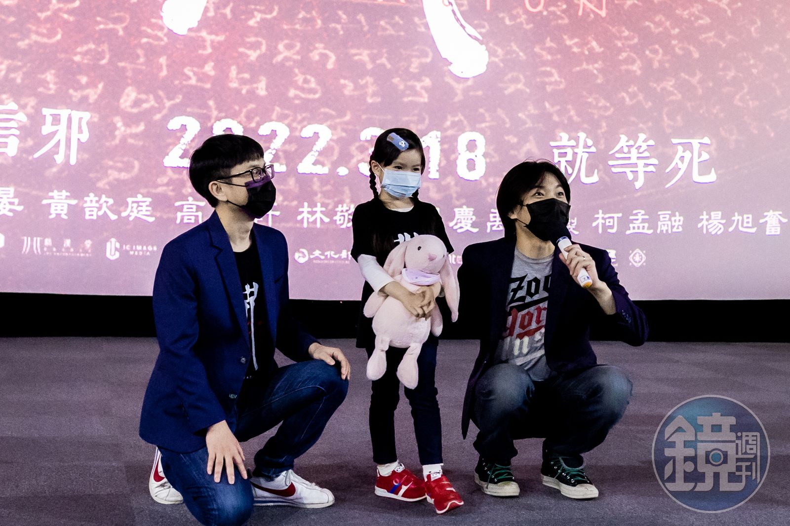 身為高雄人的柯孟融回到家鄉,與監製楊旭奮、童星黃歆庭出席高雄首映會,謝謝鄉親支持。(牽猴子提供)發布時間:2022.03.17 21:42 臺北時間