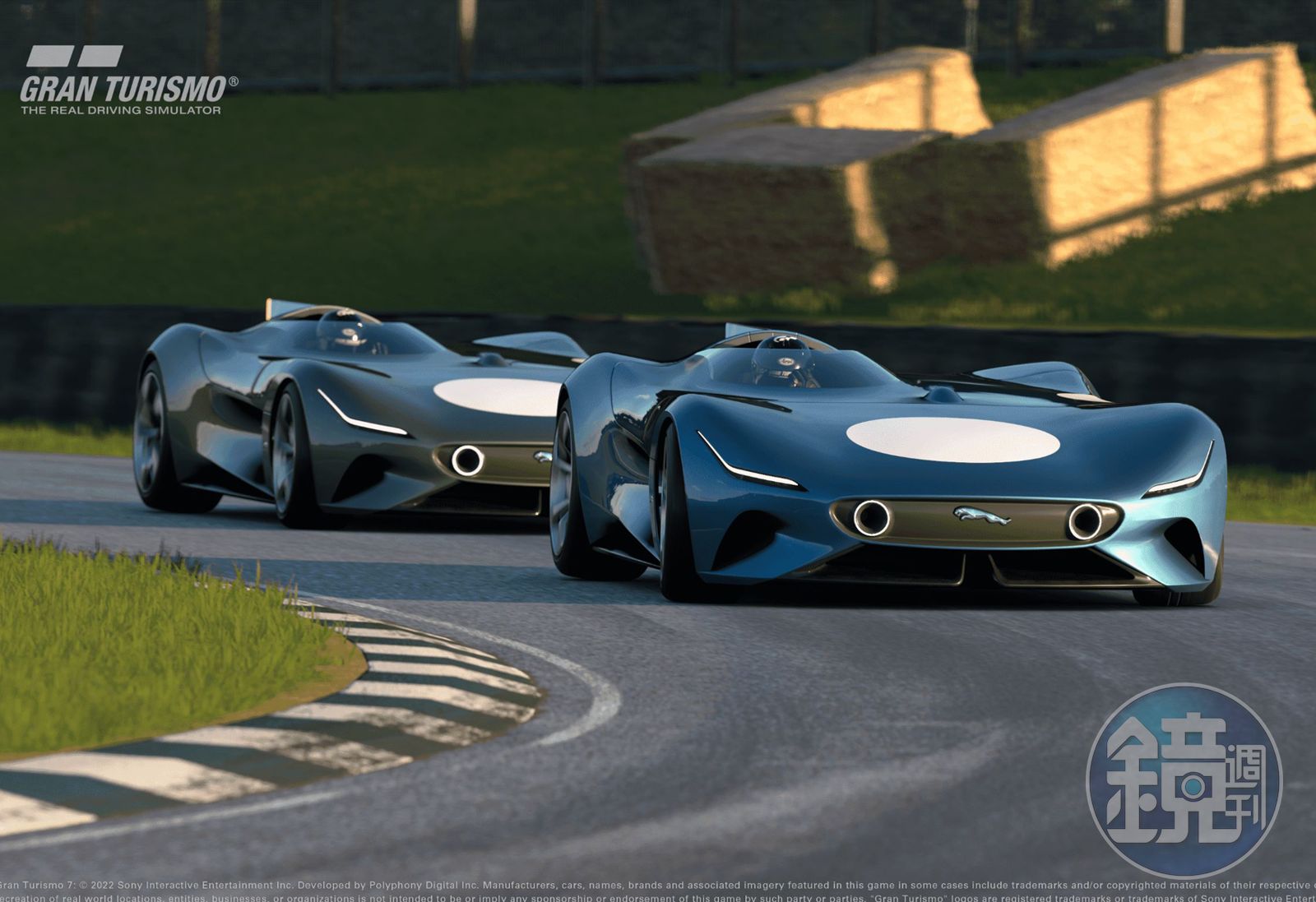 Jaguar Vision Gran Turismo Roadster 是一款純電單座賽車,設計宗旨在於為遊戲玩家帶來純粹、觸動人心的駕駛體驗,來自三具電動馬達驅動的開放式駕駛艙 Jaguar 跑車,總輸出功率超過 1,020 PS (750 kW),瞬間最大扭力達到 1,200 Nm。在不到 2 秒的時間內完成 0-60 英里/小時加速,最高時速超過 200 英里/小時,再加上出色的行路、操控和敏捷性,將帶來真正令人難忘的駕駛體驗。