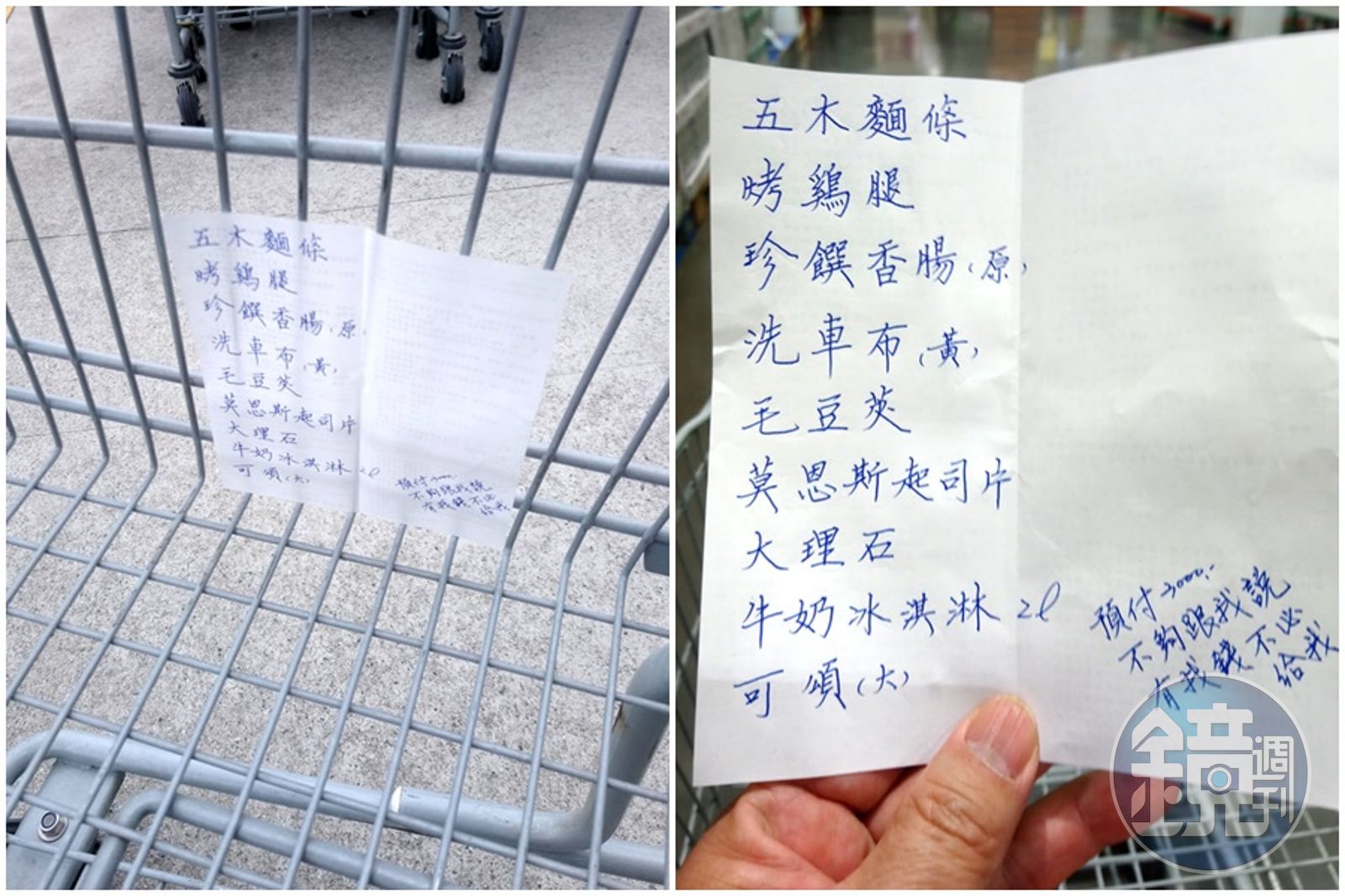 原PO表示「這位會員,下次如果你沒空,我可以幫這位代買…這種委託人我可以的…」,仔細一看,字條的右下角備註預付3千元「不夠跟我說,有找錢不必給我」。網友笑稱「右下角留言的內容,根本人品跟字一樣美!先不管有沒有找錢,看了就是爽快!」