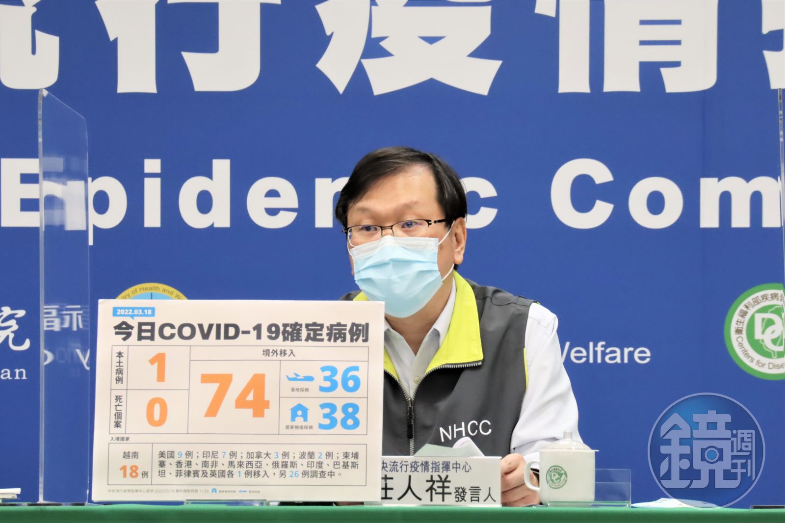 今日新增本土個案為1男2女,年齡介於20多歲至60多歲,其中案22013與22039皆完整接種3劑疫苗仍確診,兩人同屬3月13日嘉義婚宴群聚,Ct值各為18與16,疫情指揮中心發言人莊人祥表示,婚宴賓客共採檢209人,5人陽性、196陰性,8人檢驗中。案22038則為舊案同住家人,居隔期滿前採檢陰轉陽。