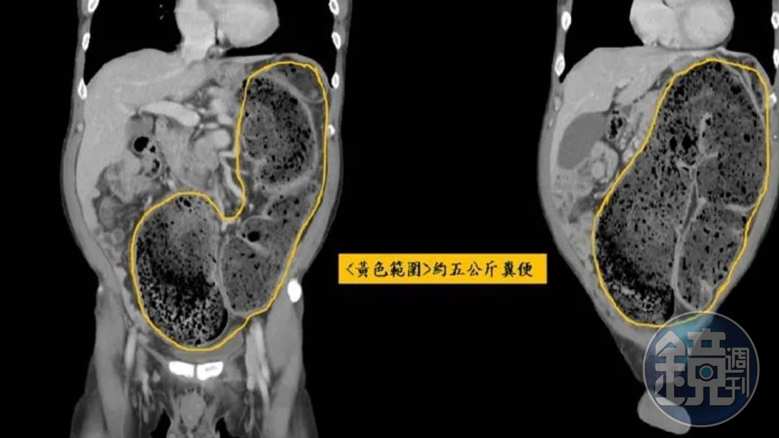 據了解,58歲男子經電腦斷層掃描,發現有異於常人約80公分的乙狀結腸,塞了約5公斤的宿便,一路頂到橫膈膜、胸腔,甚至還頂到心臟。大腸直腸外科醫師張巨成透露,該男子當時約有6*6公分的糞石,堵在大腸和乙狀結腸交接的地方,因此只能透過手指將糞石捏碎,花了約10分鐘將大糞石慢慢挖出來,而男子症狀也得到了緩解,回家排了十幾次便後,才將20天約5公斤的宿便排出。