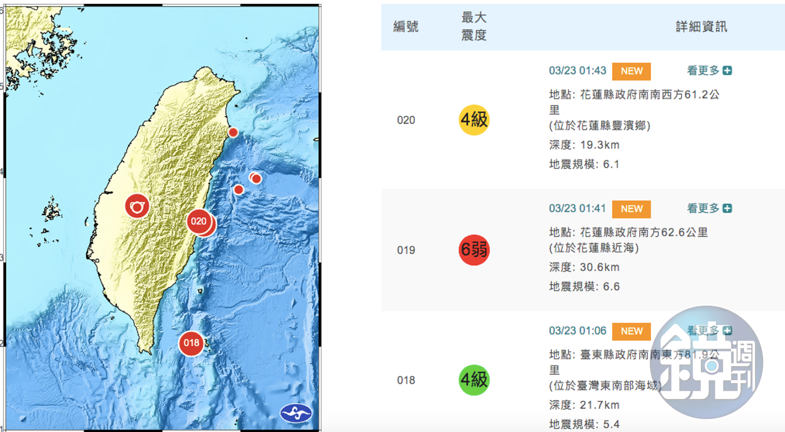 不少人被凌晨01點41分、01點43分2起地震嚇醒,其實在更早之前,凌晨01點06分就先發生一起地震。(翻攝自中央氣象局)發布時間:2022.03.23 02:22 臺北時間