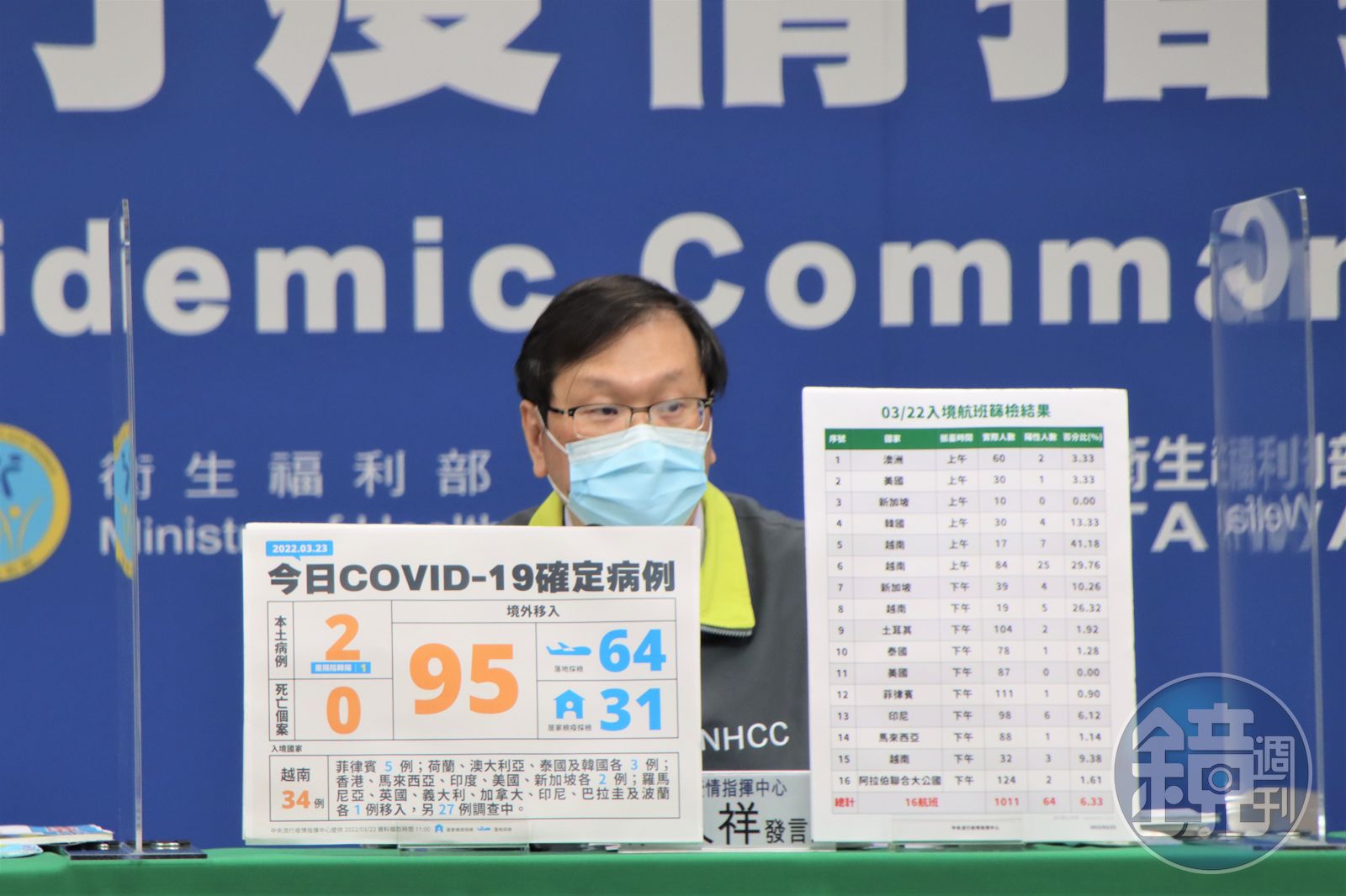 境外移入部分,64例落地採檢、31例居家檢疫,為46例男性、47例女性、2例調查中,年齡介於未滿5歲至70多歲,分別自越南(34例)、菲律賓(5例)、荷蘭、澳大利亞、泰國及韓國(各3例)、香港、馬來西亞、印度、美國、新加坡(各2例)、羅馬尼亞、英國、義大利、加拿大、印尼、巴拉圭及波蘭(各1例)移入,另27例調查中。入境日介於2月22日至3月22日。