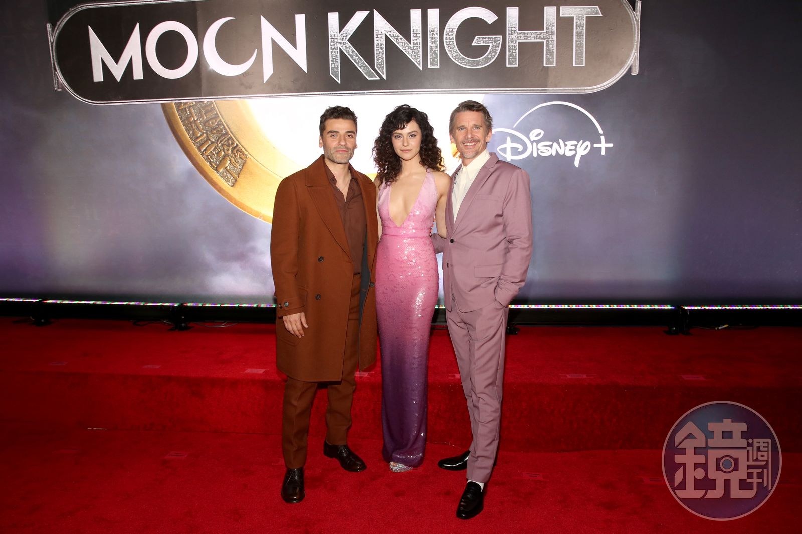 預計在3月30日在Disney+推出的《月光騎士》,是繼《蜘蛛人:無家日》(Spider-Man: No Way Home)後,足足讓影迷等了3個月才有漫威的新戲可看,因此許多粉絲都在現場首映紅毯狂歡慶祝,讓伊森霍克(Ethan Hawke)有些震驚,「這幾年疫情已經沒辦法辦首映,看到觀眾如此迫不急待,很有意思,我一輩子都在拍電影,發現粉絲把首映紅毯當成重大派對,這讓我一生有了意義!」
