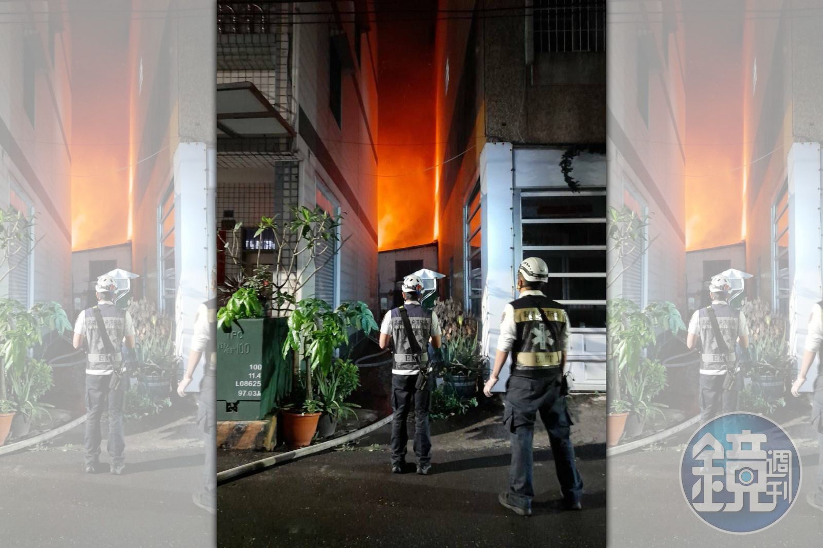 第一批消防人員抵達現場時,只見暗夜裡烈焰騰空,火舌迅速蔓延,不但包子店已經全部陷入火海,周遭建物也岌岌可危,正遭祝融肆虐。現場指揮官下令,同時佈下多條水線強力灌救、降溫,大火雖在半小時內獲得控制,但包子店以及緊鄰的兩間店面已經付之一炬,另還有附近一棟透天厝以及藥房的後方廚房遭到焚燬,但建物結構並未遭破壞。