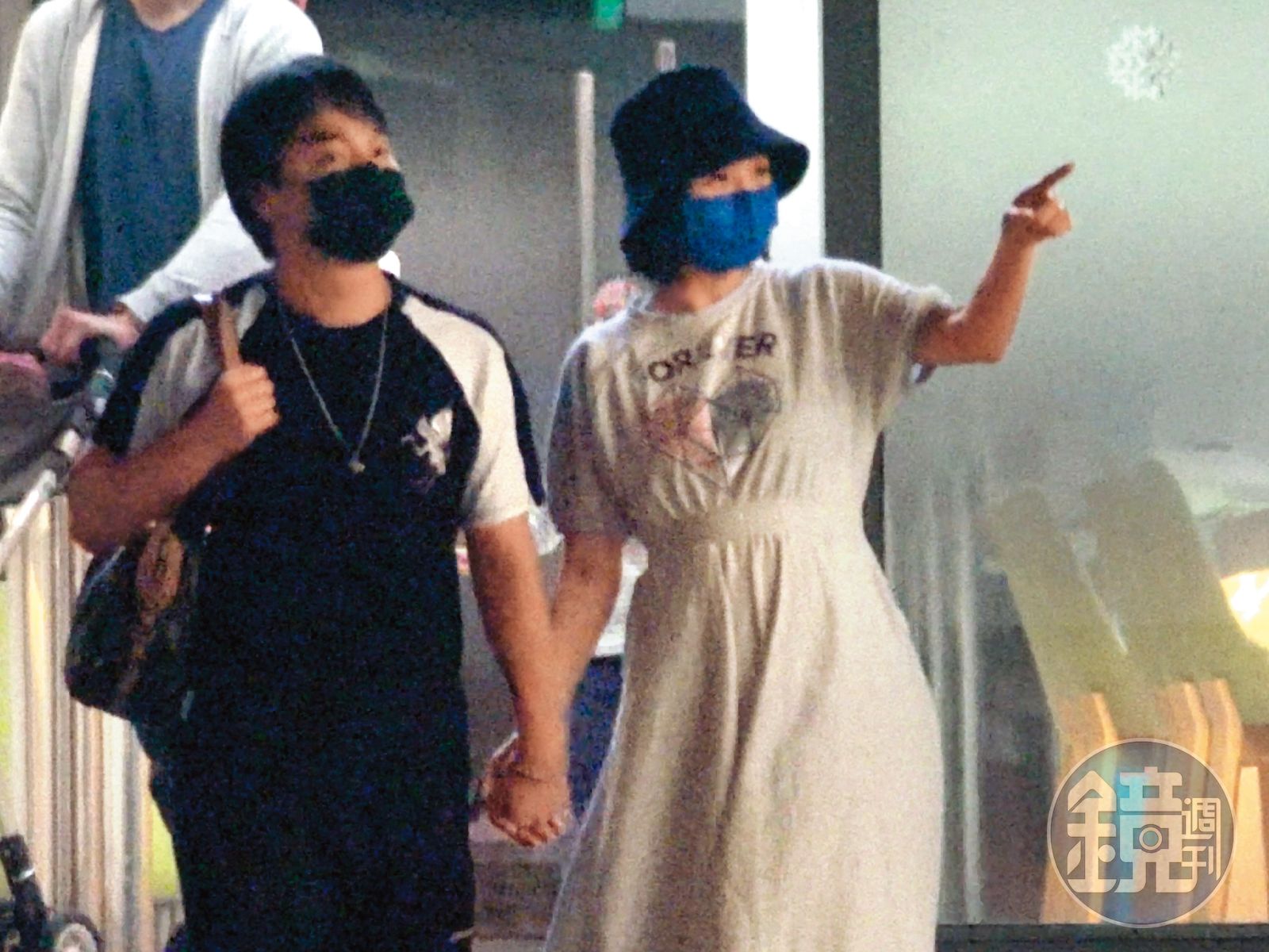 3/17 19:30 張峰奇(左)跟李亮瑾(右)手牽手從婦幼診所大門走出來,肚子明顯了。發布時間:2022.03.30 05:58 臺北時間