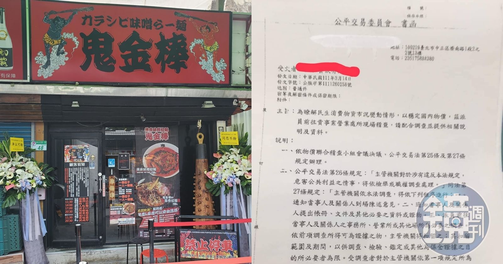 但鬼金棒昨卻爆料還沒漲價就被公平交易委員會找去說明,發函指出其涉及違反公平交易法第26條,主管機關對於涉有違反本法規定,危害公共利益之情事,得依檢舉或職權調查處理;並表示為了解民生消費物資市況變動情形,以穩定國內物資,將派員前往營業所現場稽查,請店家配合調查並提供相關說明及資料。