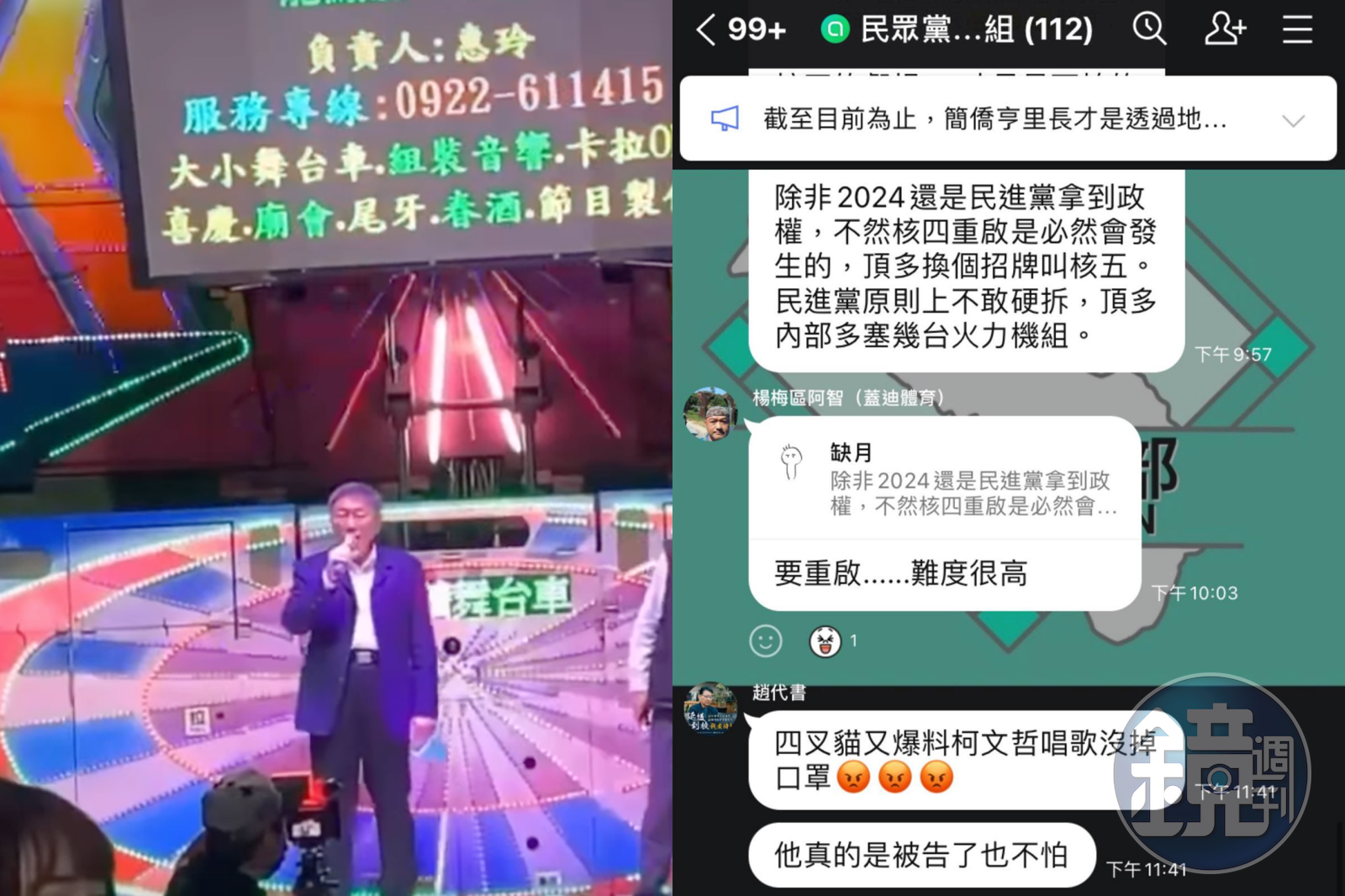 今(30日)四叉貓再度在臉書曝光民眾黨群組的內部訊息,可見一名趙代書在群組內怒嗆:「四叉貓又爆料柯文哲唱歌沒掉(戴)口罩,他真的是被告了也不怕。」對此,四叉貓則開酸回應稱「請問民眾黨的黨員是不是都把我臉書設定為搶先看,昨天晚上我貼柯文哲唱歌沒口罩的影片不到半小時就戰情回報」。