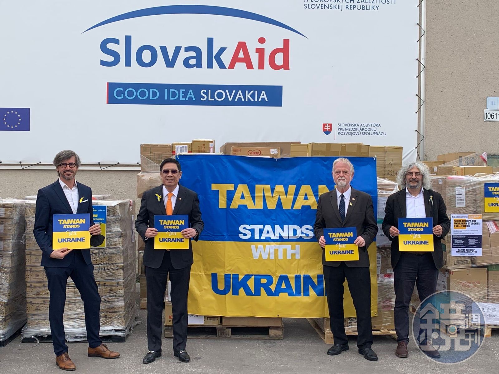 台灣駐斯洛伐克代表處昨(30日)舉行援贈儀式,將台灣民眾所捐助烏克蘭難民的第二批人道救援物資交給斯洛伐克政府,轉運至烏克蘭當地使用。援贈儀式在救難物資集散地內政部倉儲舉行,到場人士包括斯國國會友台小組主席歐舒斯基(Peter Ošuský)、公共事務協會會長梅歇斯尼可夫(Grigorij Mesežnikov)、「烏克蘭-斯洛伐克倡議」代表庫力赫(Marian Kulich)等。