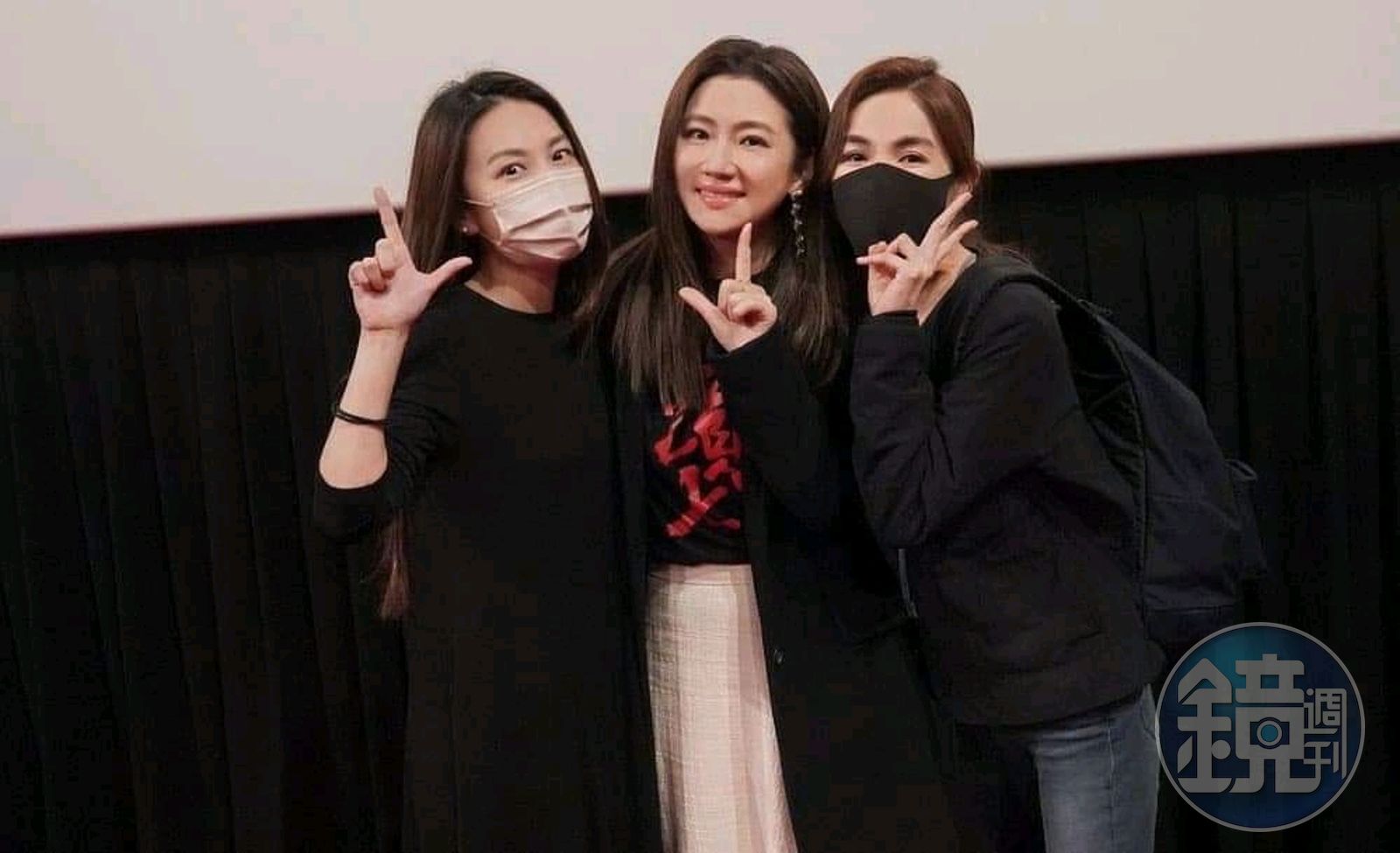 Hebe(左)與Ella(右)力挺好姐妹Selina(中)與,抽空觀看電影《頭七》,3人再度合體。(翻攝自Selina臉書)發布時間:2022.04.03 18:13 臺北時間