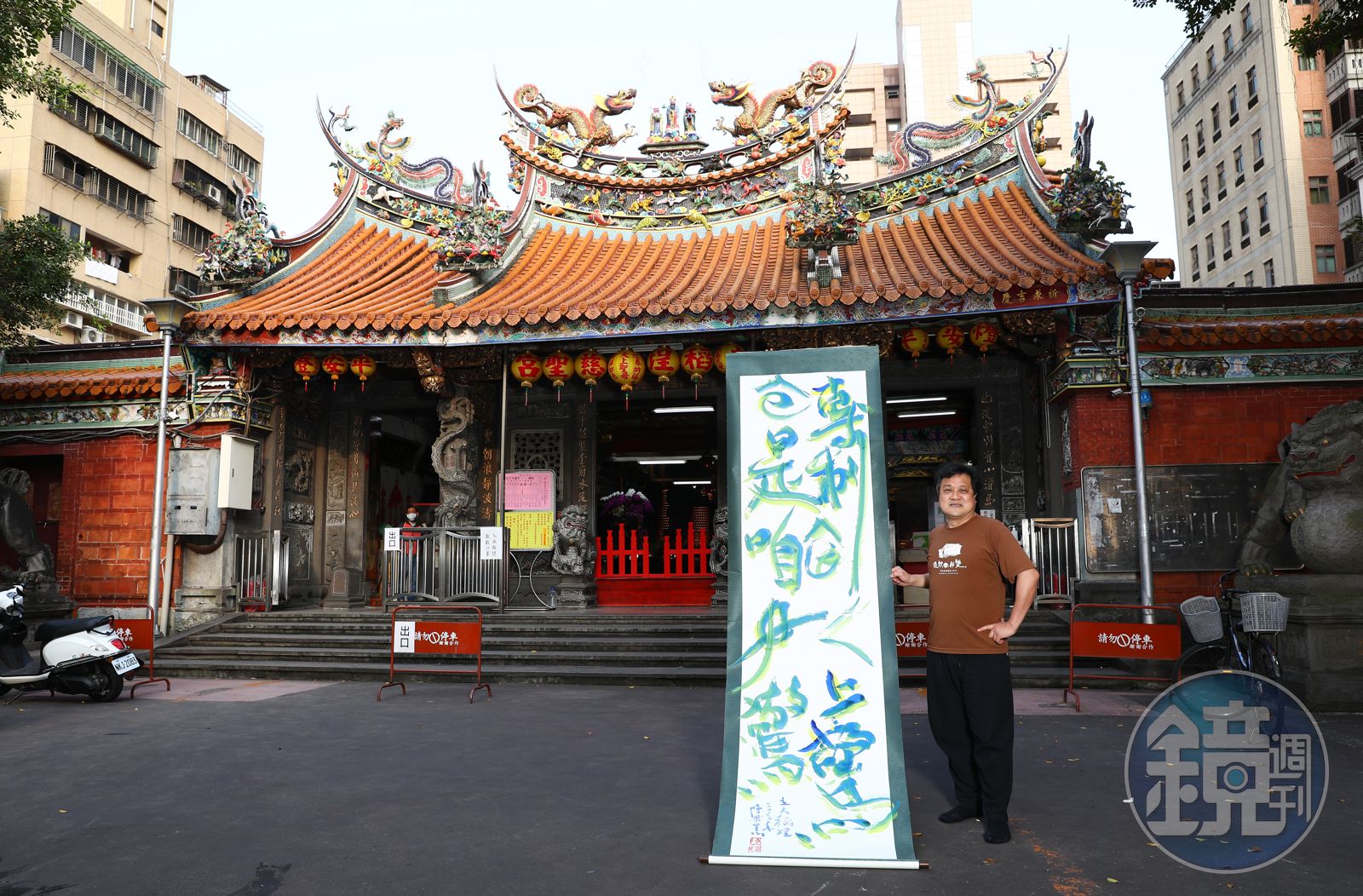 「我的想法是,例如把紙立起來,然後就自由揮灑,不要有侷限;或者是在沙上寫書法,那個觸感明顯,就比較知道下筆的拿捏。」講到如何指導視障生寫書法,陳世憲手舞足蹈地說。這兩個方法的靈感就是他從《盲劍客》的電影裡得到的。