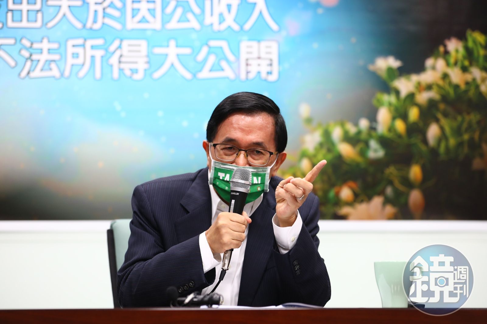 陳水扁指出,特偵組檢察官當年以他貪汙1億453萬6,390元將他起訴,但他要反問:「阿扁有貪汙嗎?阿扁有關國務機要費的錢用到哪裡去?放在口袋裡邊嗎?匯到國外嗎?生吃都不夠,哪有可能曬乾?」因此他今天將21項「機密外交與資助犒賞」的支出向世人公開,總計支出金額為1億3,300萬2,010元,強調因公支出遠遠大於因公收入,強調這些金流都是經過法院審理調查的,絕對沒有不法所得。