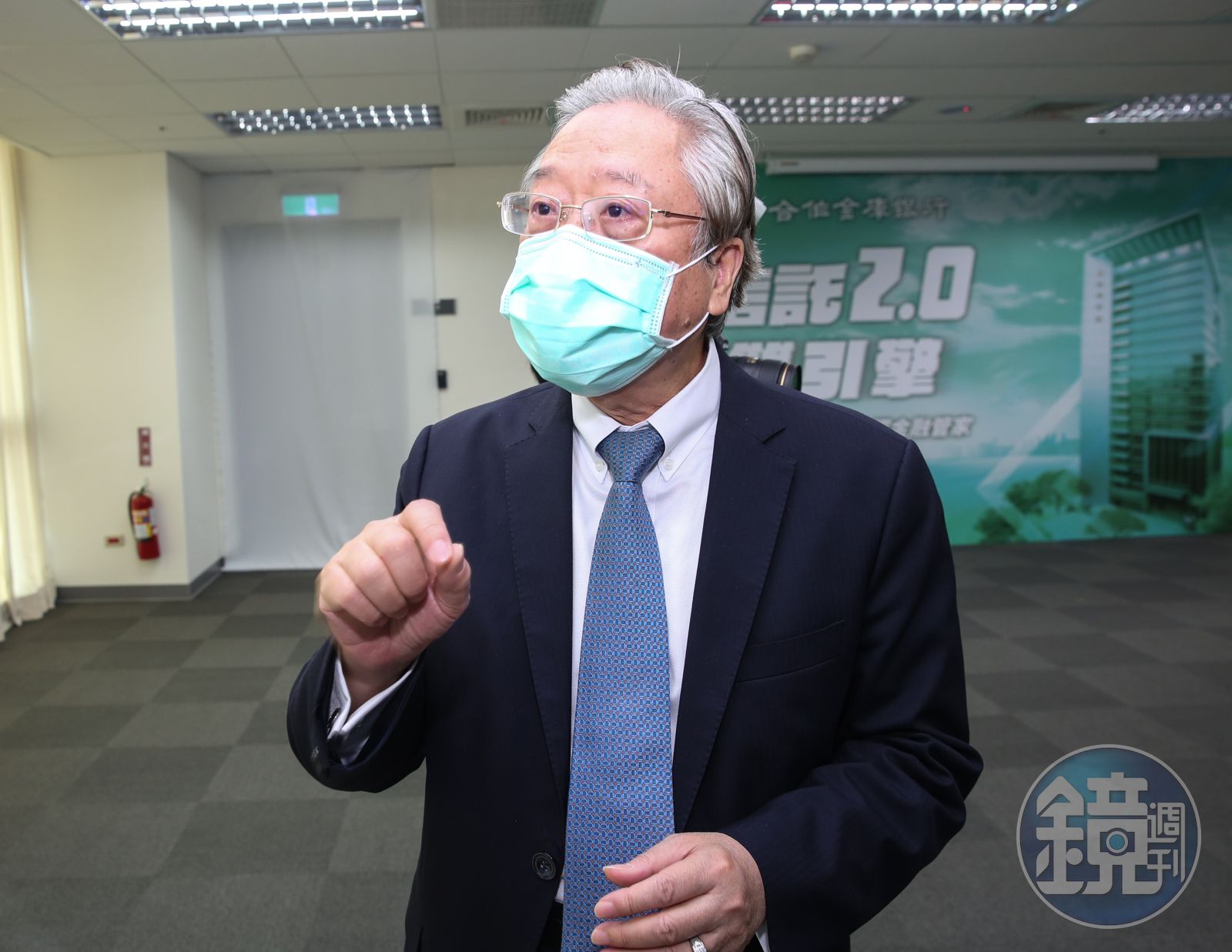 合作金庫今天舉行「信託2.0」雙引擎記者會,雷仲達會後受訪時,被媒體問到,最近金融股表現亮眼,合庫金股價還超越中信金,他笑說,股價是他最不關心的事,他更在意體質。
