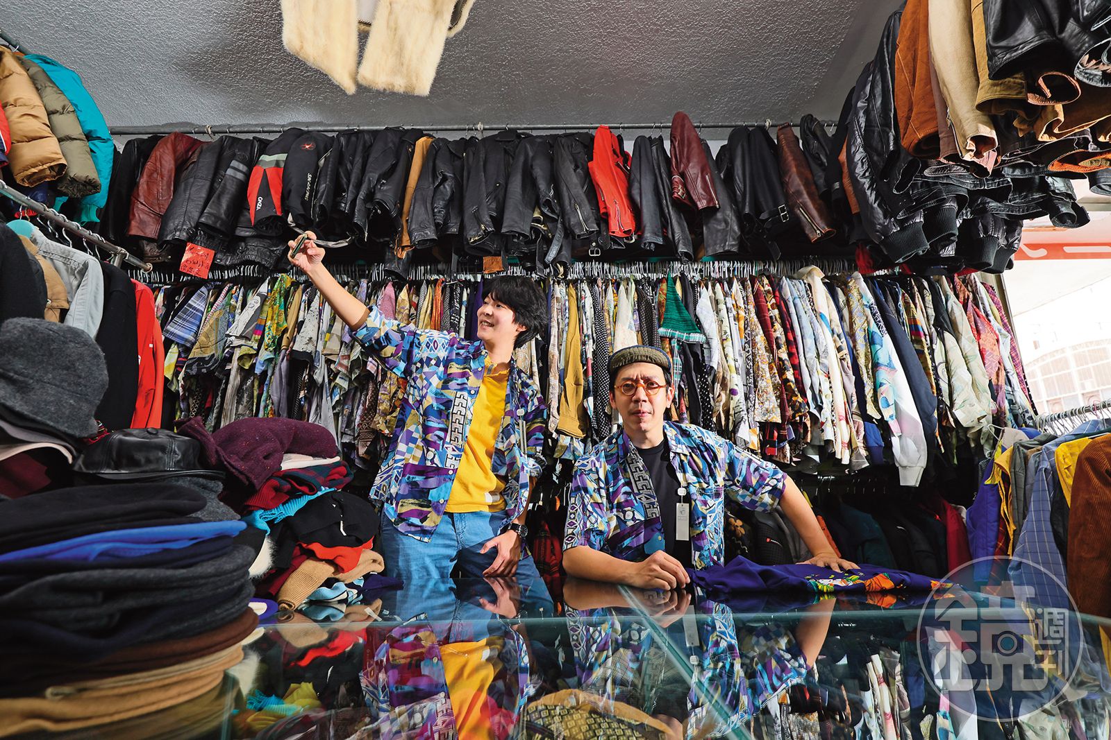 既然來到俗稱「賊仔市」的電器街喝咖啡,政道急忙拉著我,說隔壁還有一間很酷的店「日本的進口衣」,平常幾乎對二手衣沒興趣的我,竟也不知不覺開始在店內尋寶,掛在衣架上、色彩斑斕的古著襯衫特別吸引我。政道笑說,走進店裡很難不花錢,據說許多造型師都會來這裡挖寶。