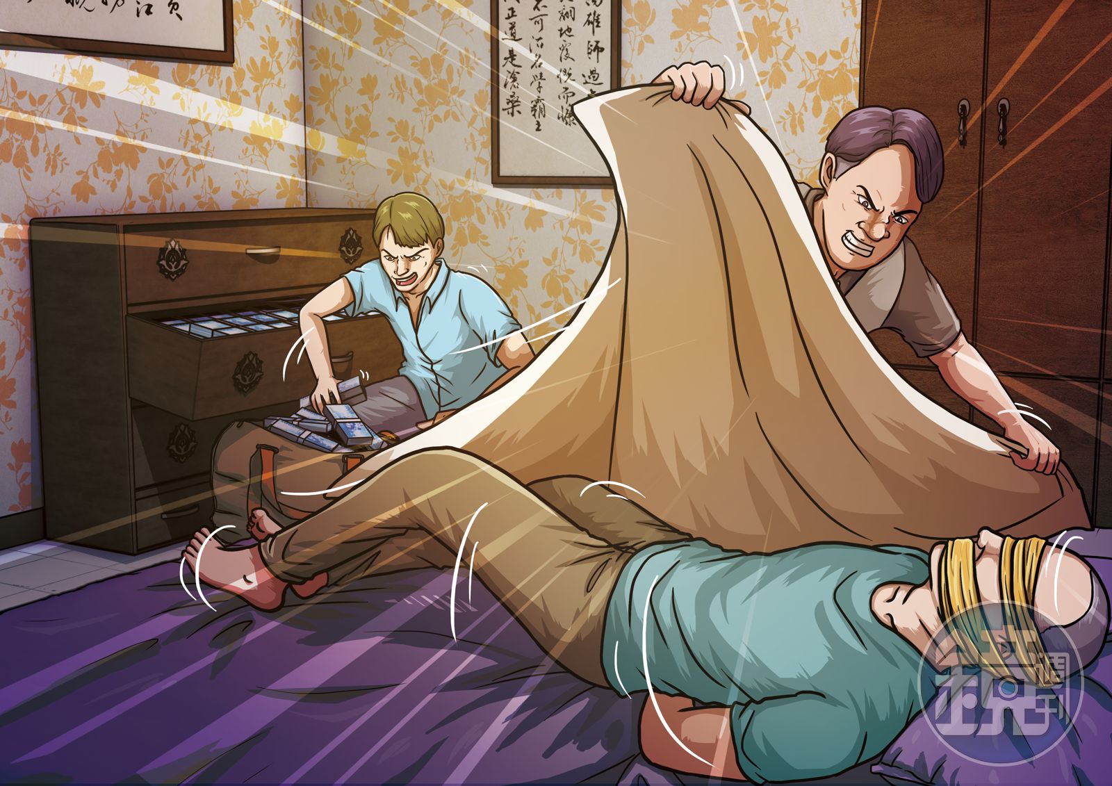轄區發生重大竊案已夠令人頭疼,3天後,老榮民又被發現陳屍在山區產業道路旁的草叢裡,他已遭勒斃,口鼻、手腳綑綁膠帶,全身裹著白色被單。竊案變成命案,警方立刻傳訊C女,這時她才改稱,案發時一進屋裡,立刻被歹徒控制住,對方將她雙手反綁,蒙住眼睛,不曉得在屋內做了什麼,臨走前還威脅她:「如果4天後,沒有妳老公的消息,就可以報案了。」
