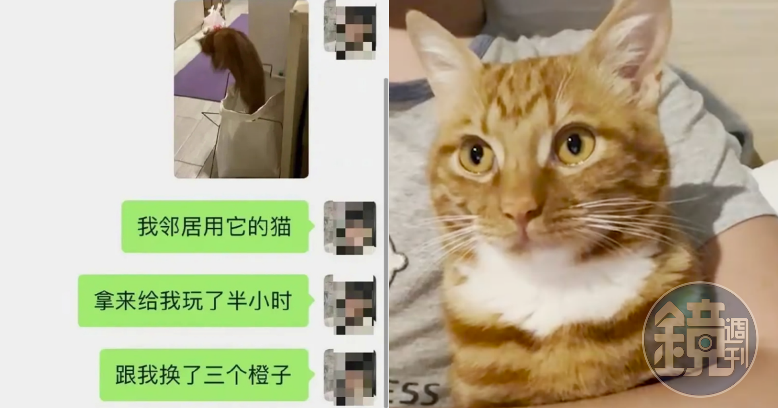 據《澎湃新聞》報導,近日上海一名應姓男子將家中的橘貓送去陪鄰居半小時,最後換來3顆橘子,「擼貓換橙子」一事在網路上走紅,應男表示,因為大家的物資都消耗的差不多了,便在聊天群組裡以物易物,當時一名女子想以橘子換其他食物,應男想跟她換,女子卻對他的食物沒興趣,便直接送他3顆橘子。