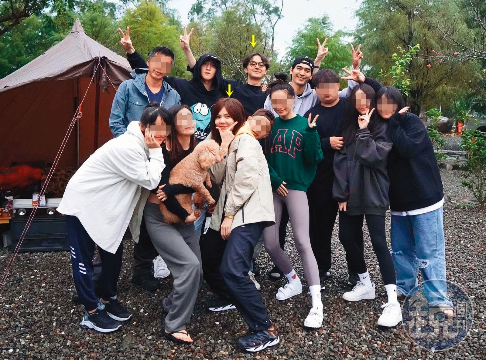張軒睿(後排箭頭處)跟潔西卡(前排箭頭處)的戀情藏在眾人之間出遊,兩人在照片中並沒特別互動。(翻攝自winnie12.02 IG)發布時間:2022.04.13 05:58 臺北時間