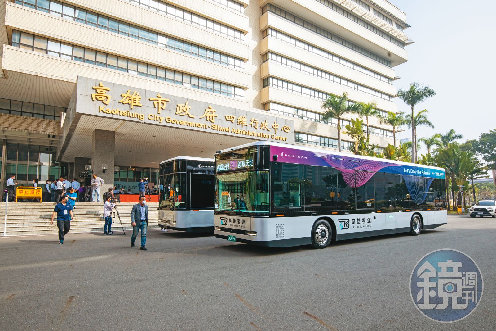 3月16日,高雄豔陽高照,1台銀色車身的電動巴士(以下簡稱電巴),在鴻海董事長劉揚偉與高雄市長陳其邁等人注視下,緩緩駛入高雄市政府,引起眾人驚嘆。此款電巴未來將加入高雄的公車路線,現身高鐵左營站、漢神巨蛋、捷運巨蛋站和義享天地等人潮較多的區域。