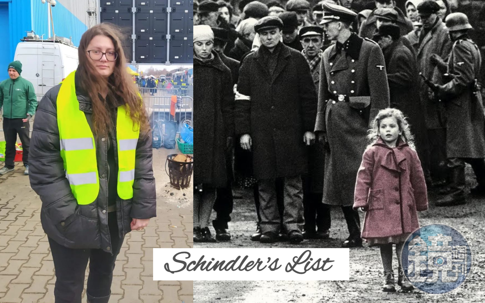 奧利維亞將《辛德勒的名單》原本的黑、白基底的紅衣小女孩劇照,改為烏克蘭國旗的藍、黃配色,希望喚醒這世上千千萬萬的辛德勒們。最近她正收集書籍給烏克蘭難民,她寫下:「身為一位書籍的愛好者,我知道閱讀的力量。一本好書可以讓人忘卻那些纏繞身邊不好的事情。」如果有人想捐獻物資或金錢,可上奧利維亞的IG:Oliwia Dabrowska。