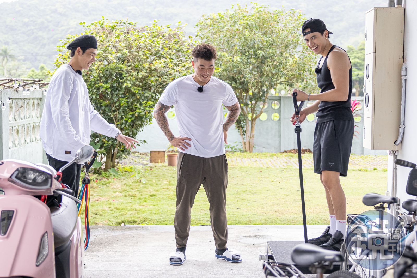 潘君侖、王品澔錄《觀察中2》把郭泓志的離心器拉壞。(台視提供)發布時間:2022.04.19 12:04 臺北時間