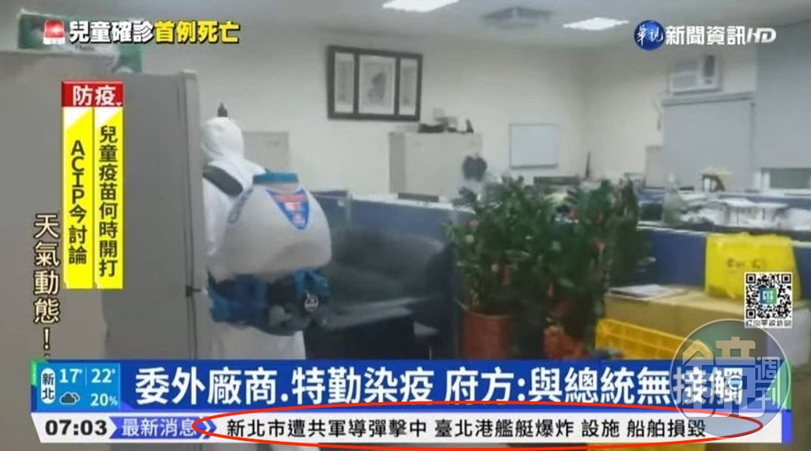 華視新聞今天一早接連出現「新北市遭共軍導彈擊中,臺北港艦艇爆炸、設施、船舶損毀」「板橋車站疑似遭特攻縱火施放爆裂物」甚至出現「中共備戰頻繁,總統發布緊急命令,3月6日8時起生效」「泰山出現七級大地震」等聳動的快訊標題,讓不少觀眾看得嚇得以為共軍真的打過來,在YouTube直播平台詢問「到底發生什麼事」?