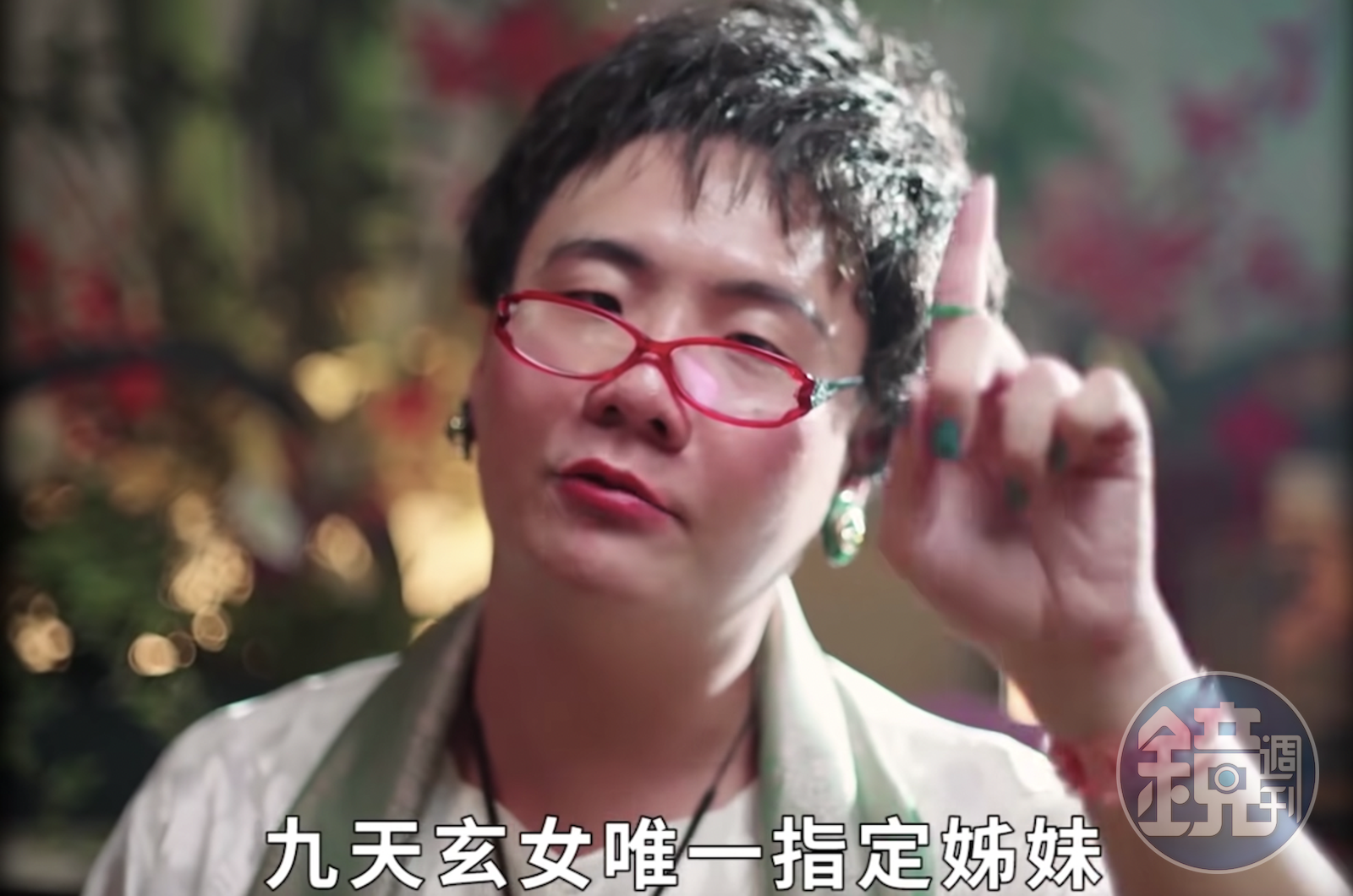 阿翰在新影片中扮演算命師廖麗芳,說自己是九天玄女唯一指定姐妹。(翻攝自阿翰YouTube頻道)發布時間:2022.04.20 14:26 臺北時間