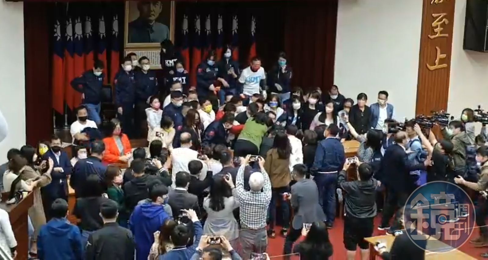民進黨團祭出甲級動員,昨晚起就輪班在立法院會議室門口守夜,而國民黨立委也在今一早6點30分會議室一開門時就試圖突破衝圍,藍綠立委爆發推擠衝突,由召委沈發惠成功占領主席台,等待9點開會。期間國民黨立委也試圖強占主席台,還一度拔掉麥克風,並在現場狂撒假鈔和假禮券,意在諷刺綠營為陳水扁的弊案護航,高喊「違法審查」。