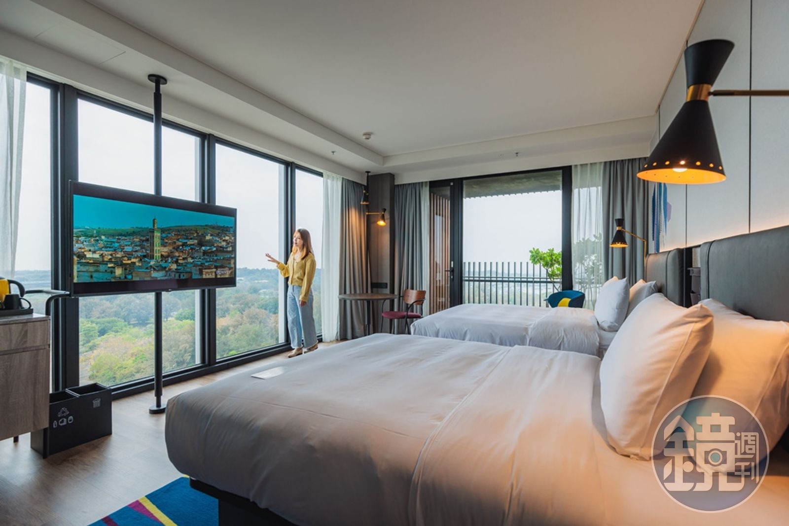酒店共有115間房,採無鑰匙App入住系統,每間皆配置55吋液晶電視及高速Wi-Fi無線網路,各種設備都有滿滿的科技感。房型則分為客房的「快活樂窩」「呼風樂窩」「叱吒樂窩」和套房的「快活樂巢」「風語樂巢」,若是套房等級的房間,皆配有浴缸。