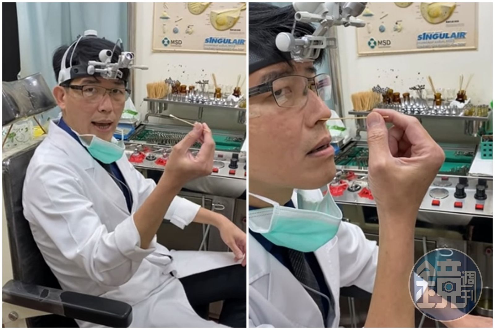 此時棉棒已經非常深入鼻腔,不過呂醫師看起來一派輕鬆,接著表示「這個時候你可以選擇,上下刷一刷、左右刷一刷,或轉一圈」,就可以拿出來放進試劑裡面。
